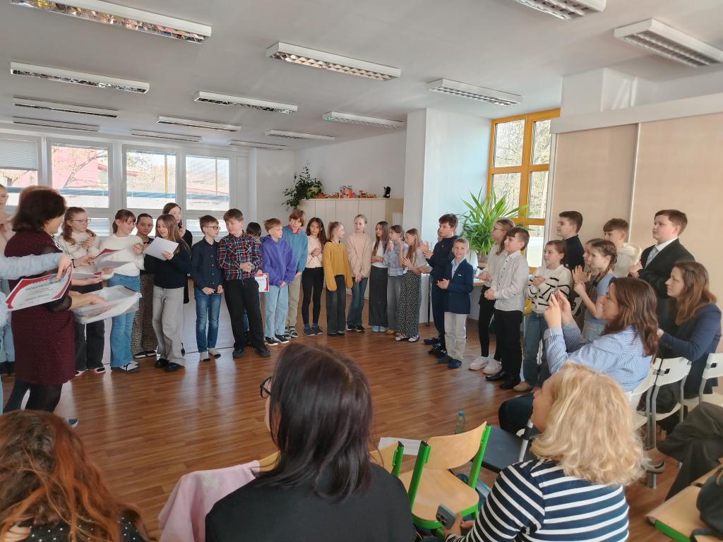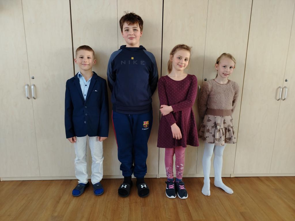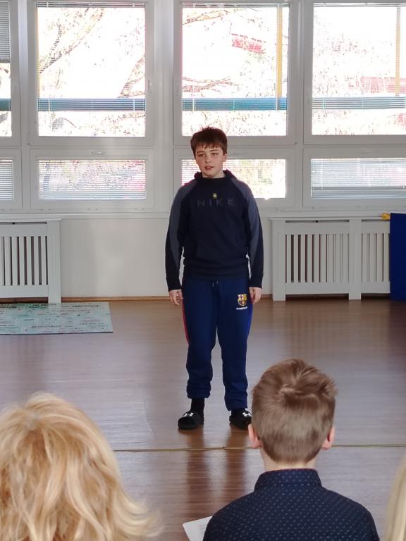 Z každé kategorie (mimo nulté) porota vybrala šest nejlepších recitátorů, kteří postoupili do krajského kola. Velké ocenění si zaslouží David Bednář ze 4. A, který nejenže postoupil, ale byl porotou nominován mezi dva nejlepší recitátory ve své kategorii, ve které soutěžilo dokonce 36 žáků. Gratulujeme k mimořádnému úspěchu!
