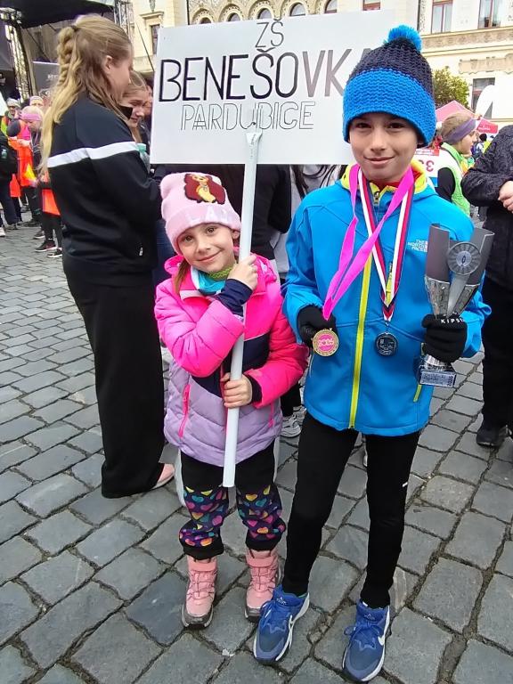 I přes nedostatek startovních čísel jsme vše zvládli a všichni se mohli přesunout včas na start. 1. a 2. třídy mohly běžet kratší trasu společně s mateřskými školkami. Ostatní pak klasickou trasu pro ZŠ. V cíli na běžce čekala medaile, jablko, ochucená mattonka a pro děti také zmrzlina.