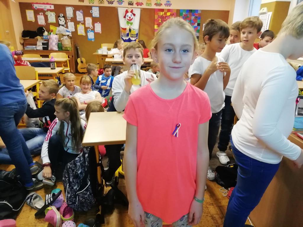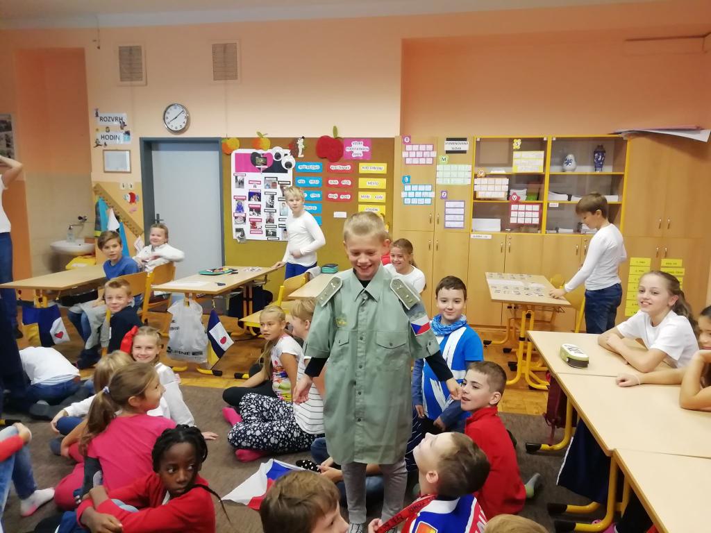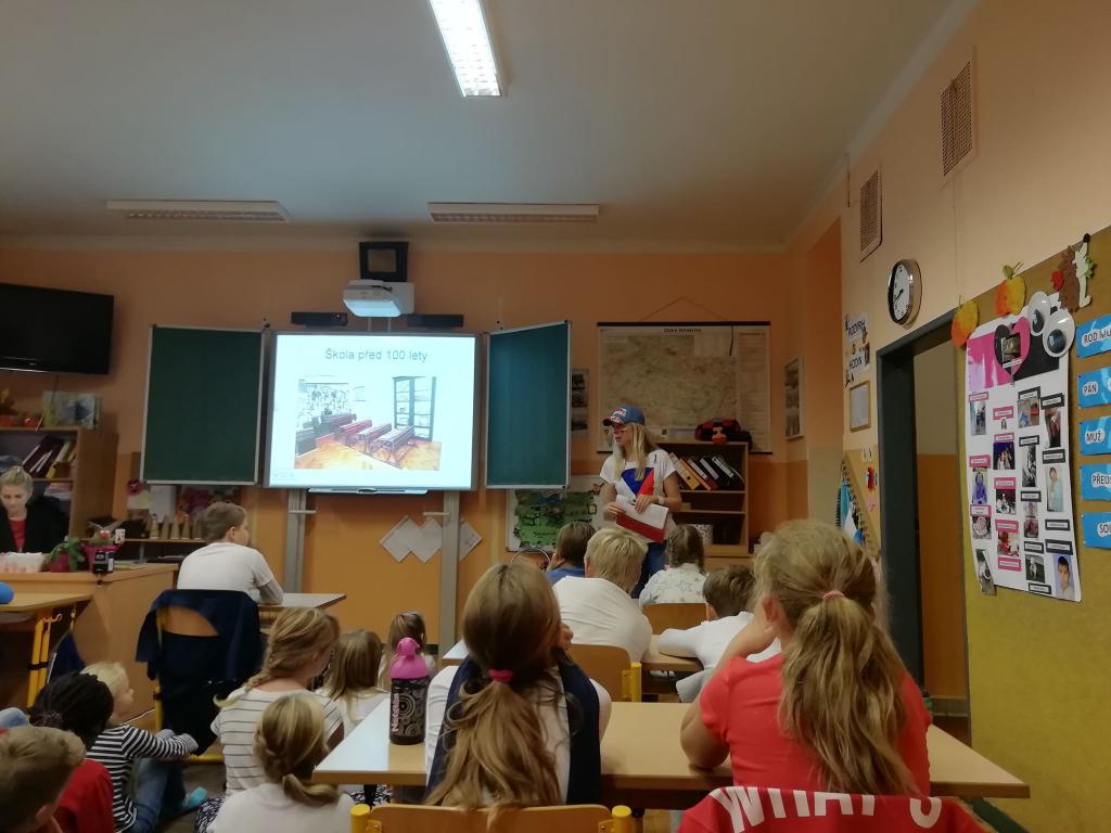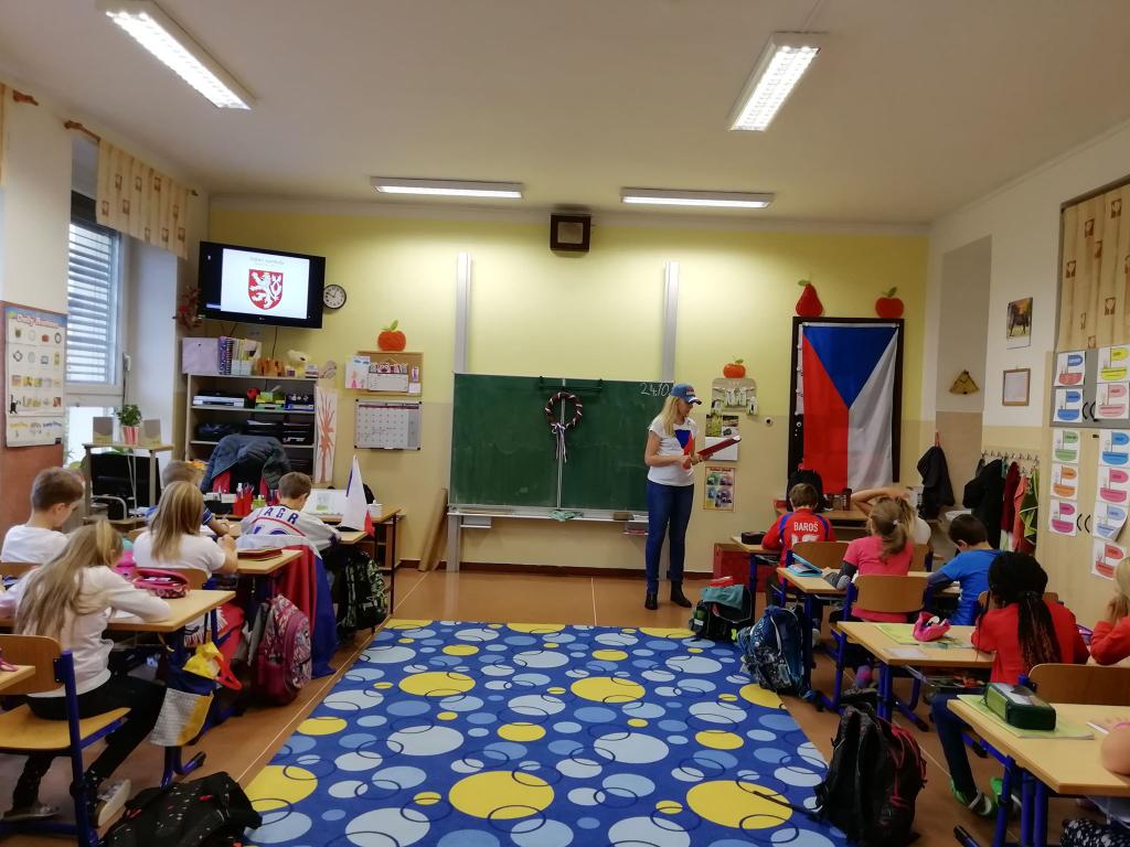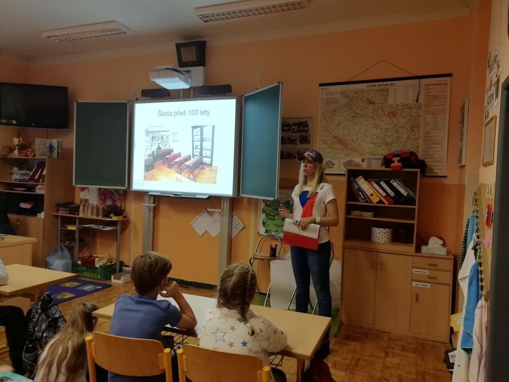 Dnes si děti ze 4. A a 4.B prošly projektovým dnem zaměřeným na 100 let výročí naší republiky. Na úvod jsme se všichni ozdobili trikolórou a poslechli skvěle se hodící písničku Za 100 let od Ewy Farné. Pak už nic nebránilo tomu odstartovat šestihodinový našlapaný program, kdy jsme si připomněli, jak vypadala škola před 100 lety, zaposlouchali se do odpovědí v dotazníku s pamětnicí narozenou v roce 1924 a uvědomili si, jak těžká doba to byla. Viděli jsme videa, týkající se vzniku Československa, Pražského jara 1968 i Sametové revoluce 1989, vyplňovali pracovní listy, povídali si o státních symbolech a seznámili se s důležitými osobnostmi naší země.
