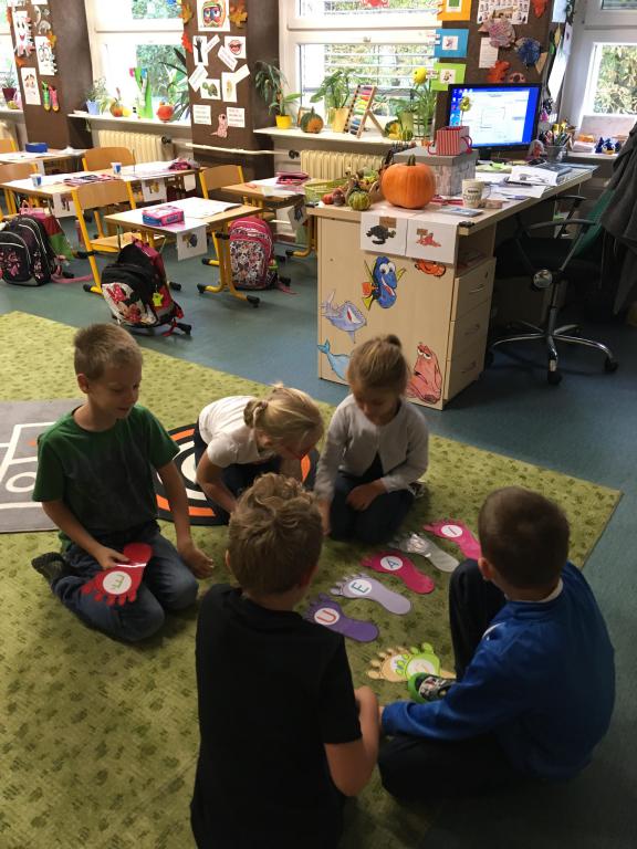 Před prodlouženým svatováclavským víkendem bylo u nás ve třídě rušno. :) Učili jsme se číst slabiky a na procvičení jsme si zahráli ve skupinkách. Jeden v každé skupince dohlížel na správnost slabik nebo slov, které děti skládaly. :) V profesorských brýlích to slučelo všem :)