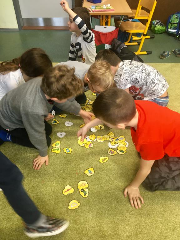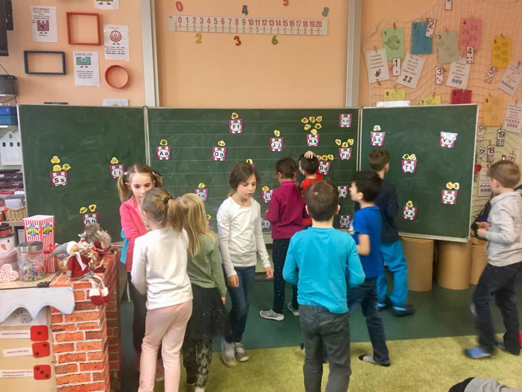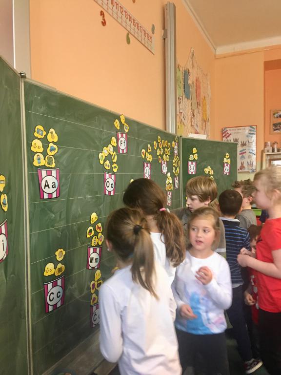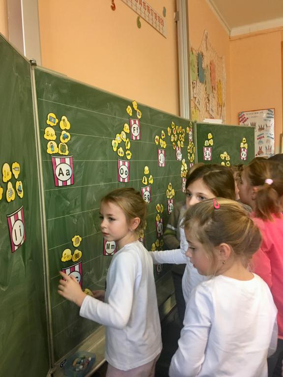 Novinkou ve škole je možnost trávit úterní a páteční velké "svačící" přestávky na hřišti školy. Na to jsme se těšili převelice a v pátek ven "vypálili jak rakety." :) Učení nám pak šlo výborně. Doskládali jsme popcornovou abecedu, kterou začali ve středu odpolko předškoláčci, zahráli jsme si novou deskovou hru v matematice a zaťukali jsme si v hudebce písničku "Rybička maličká" na bobotubes. :)
