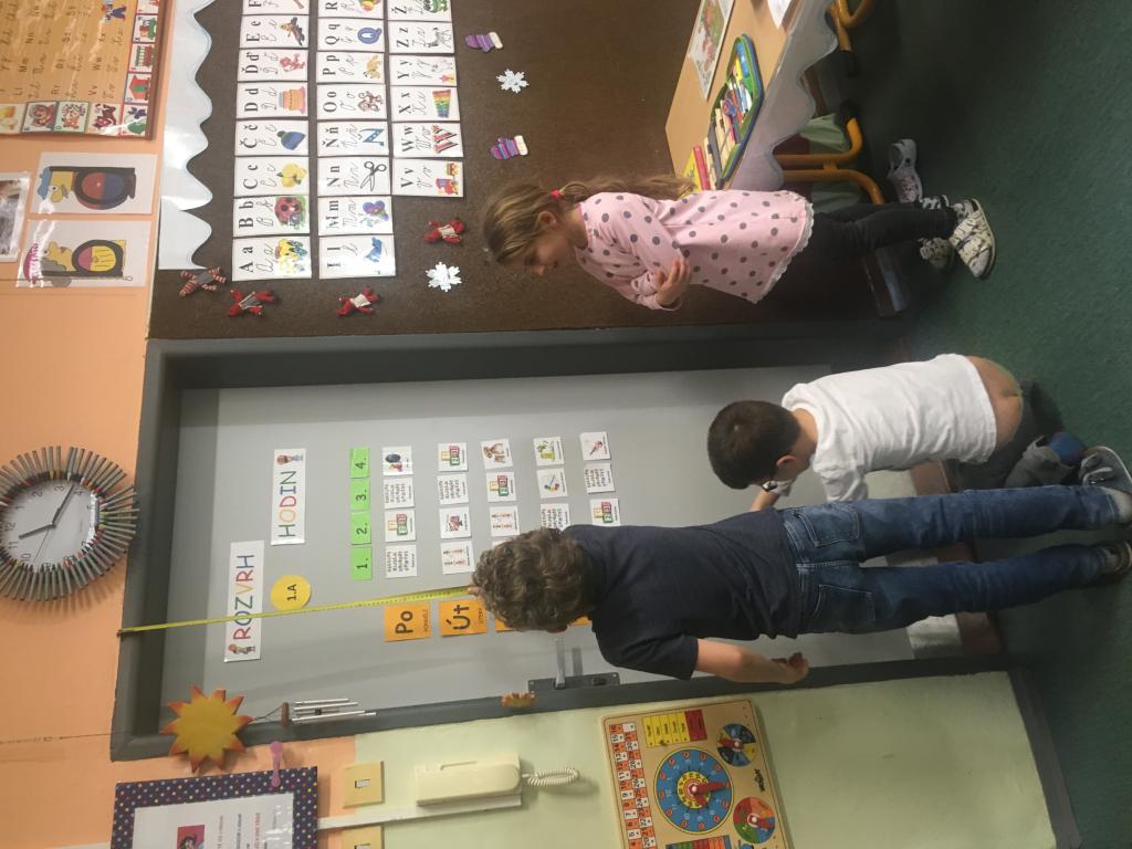 Ve zkratce by se tento týden dal popsat asi takto: pondělí... frrr .... pátek. Uteklo nám to opravdu hodně rychle. :) V pondělí jsme ještě využili valentýnskou výzdobu a počítali pomocí srdíčkového domina příklady. Bavilo nás to a předháněli jsme se v rychlosti. :) Ještě větší zábava ale bylo měření metrem. Všeobecné nadšení nebralo konce a měřili jsme doslova úplně všechno. Došlo i na měření popelnice nebo obvodu pasu. :D Také jsme se všichni těšili na vzájemnou prohlídku knížek, které si čteme doma.
