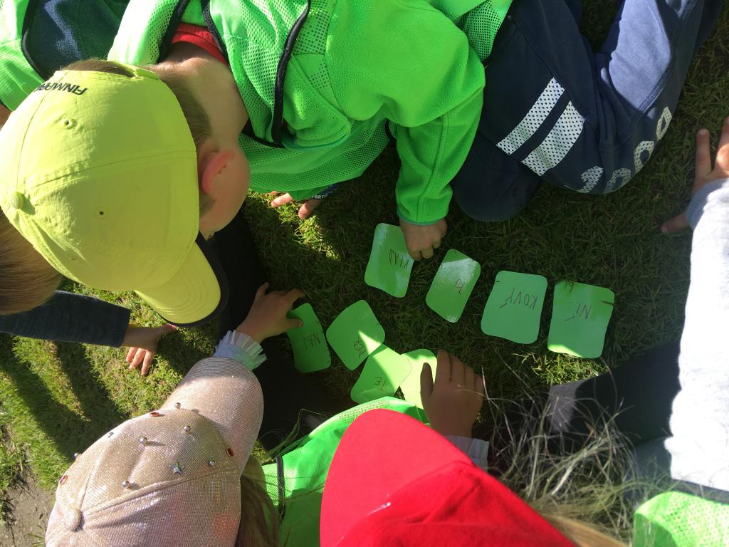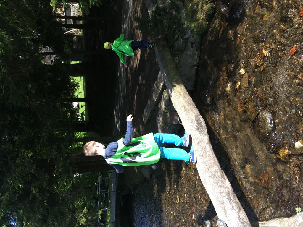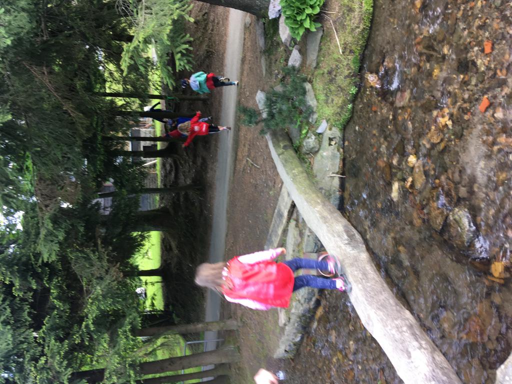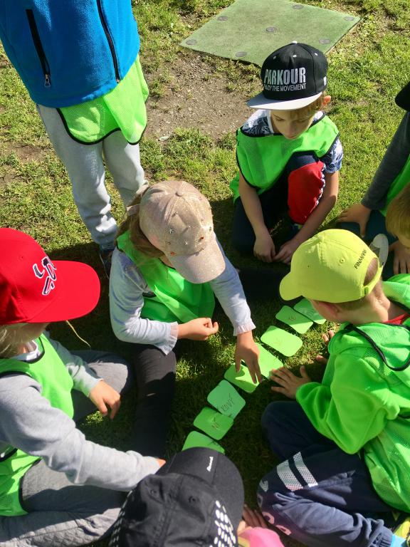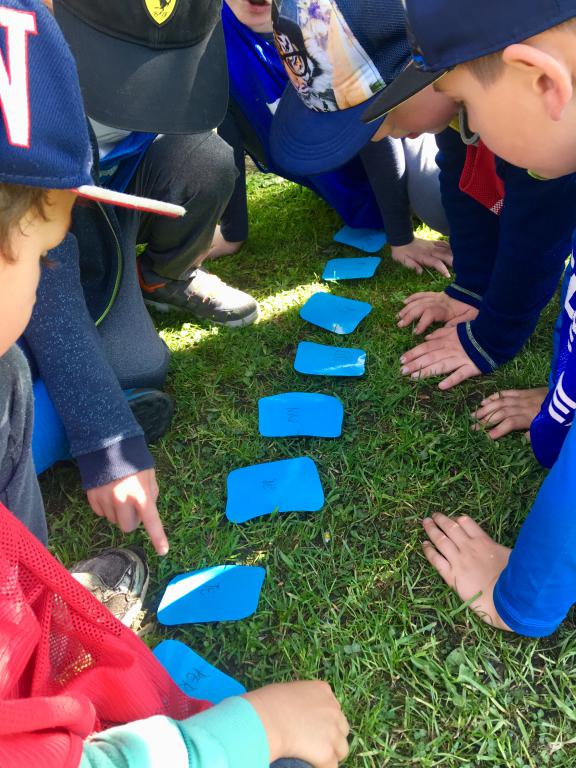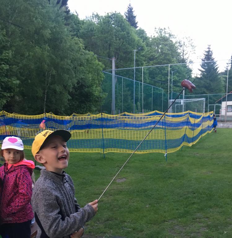 Odpoledne jsme hádali podle popisu pohádku. Shodli jsme se, že verzí příběhu Jeníčka a Mařenky je několik. Všechny se ale odehrávají v lese a tam jsme se vydali i my. Během fáborkového závodu jsme překonali potok po úzké lávce, cestou posbírali osm papírových "perníčků" a v cíli vyluštili tajenku, která byla napsaná po slabikách na zadní straně kartiček. Jak zněla? NAJDĚTE PERNÍKOVÝ POKLAD! :) Pro každý tým skutečně ten jejich "jedlý poklad" čekal v prostoru cíle. Jen najít místo úkrytu. :)