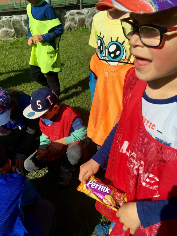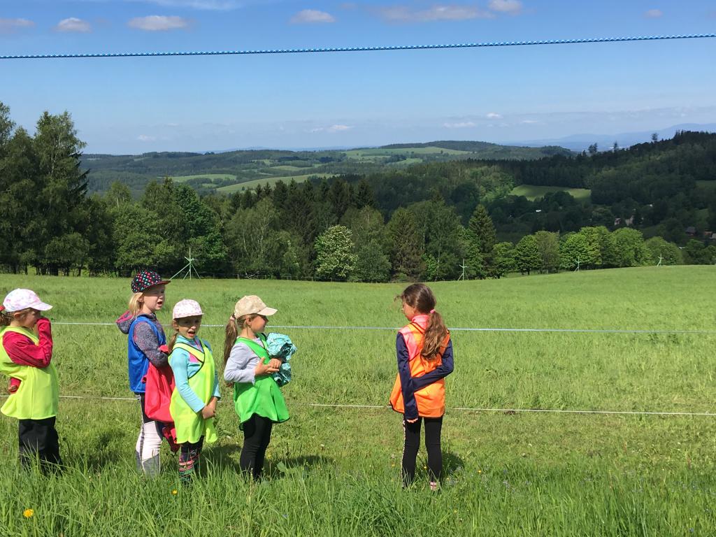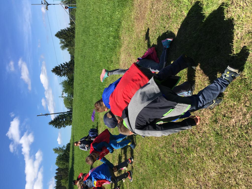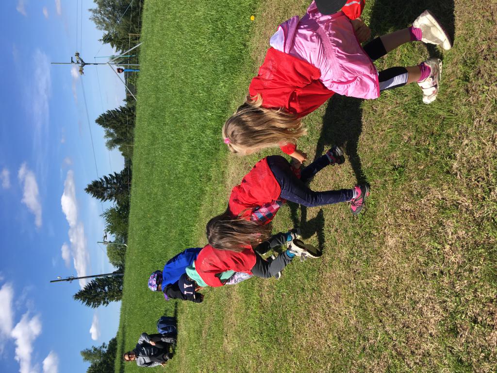 Sluníčko! Překrásný den jsme si užili! :) Dopoledne jsme opět vyšplhali až na vrchol sjezdovky a zahráli si tam hry. Také jsme vyzkoušeli naši koordinaci a umění spolupracovat v týmu. A následně i "zamotanou stonožku" rozpohybovat. Byla to legrace a pro někoho i velký hlavolam. :D