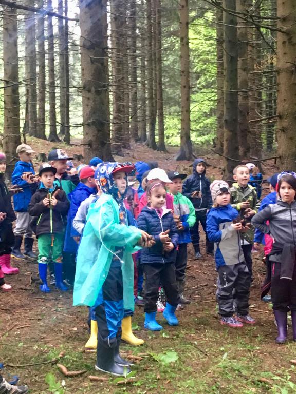 Druhý den nás přivítal zamračenou oblohou. Dopoledne jsme ještě mohli vyběhnout ven na procházku, ale odpoledne nás definitivně déšť zahnal do chaty.