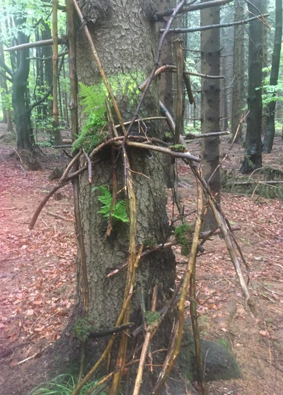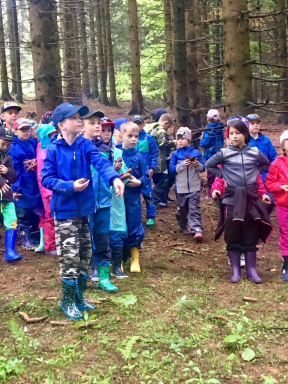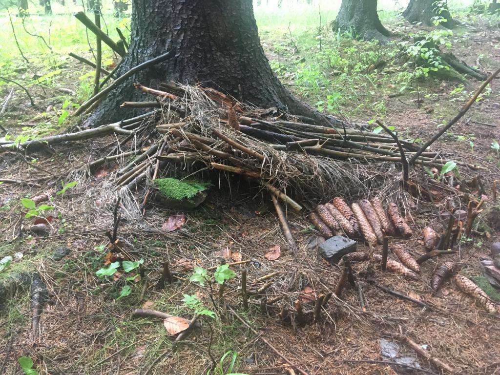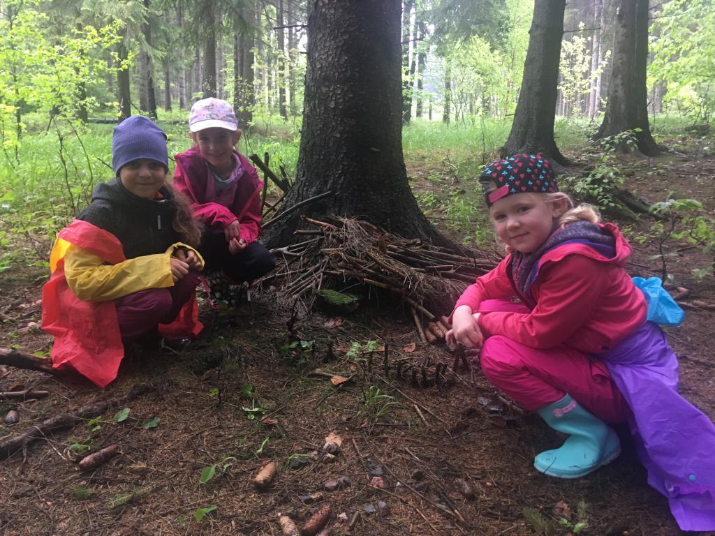 Po snídani jsme šli prozkoumat širší okolí chaty. Přibližně dva kilometry od Jurášky je chata Čihalka a ještě o kousek za ní jsou už česko - polské hranice. Tak jsme se do Polska šli podívat. Alespoň na kousíček. :) Postavili jsme pár domečků i v tamním lese, házeli jsme šiškou na cíl a šli na oběd.