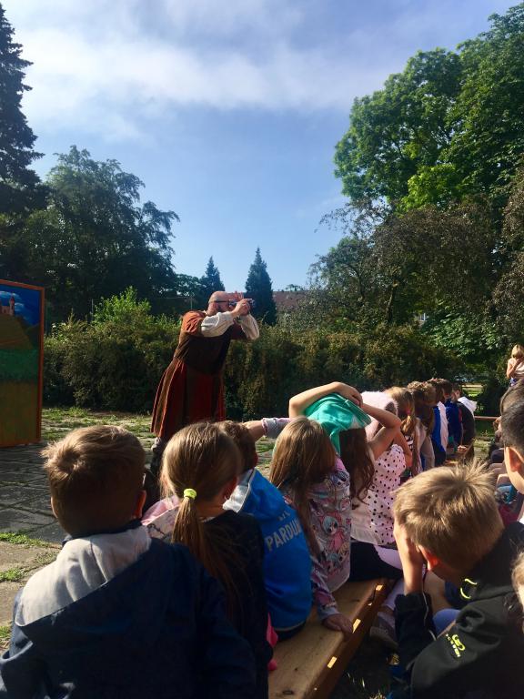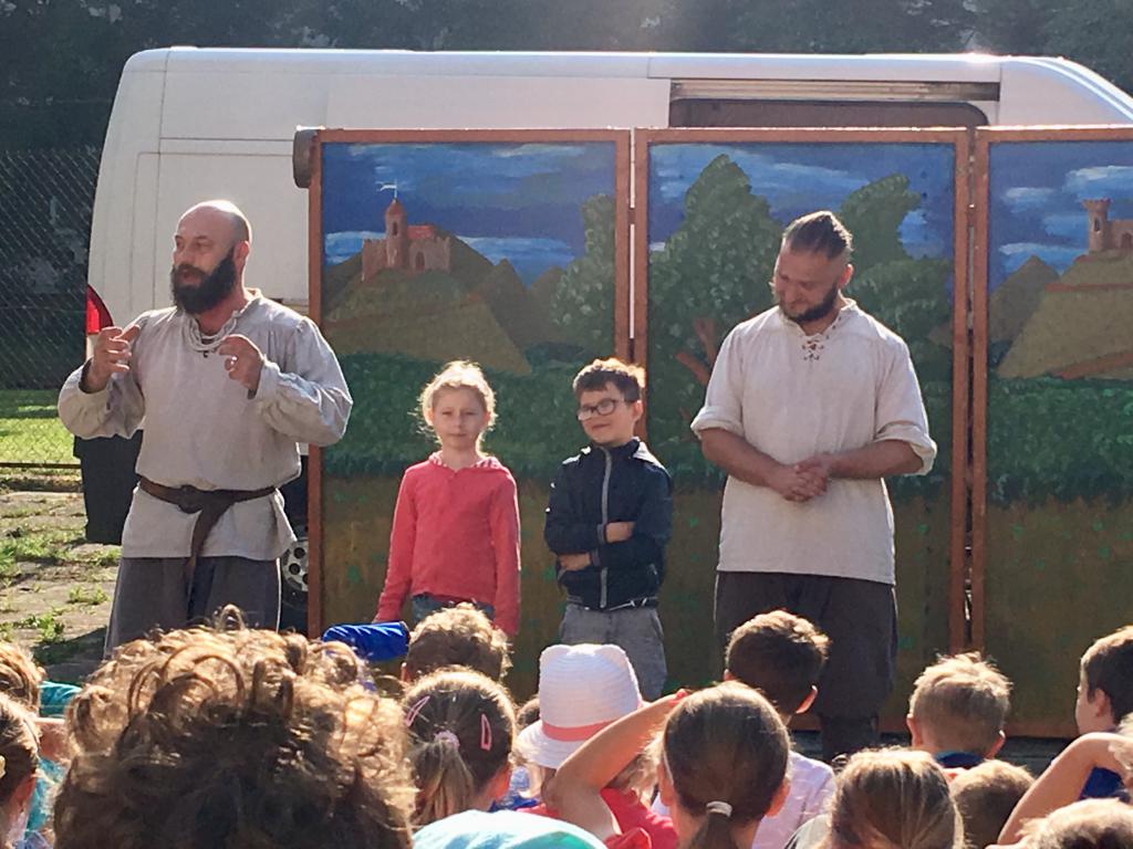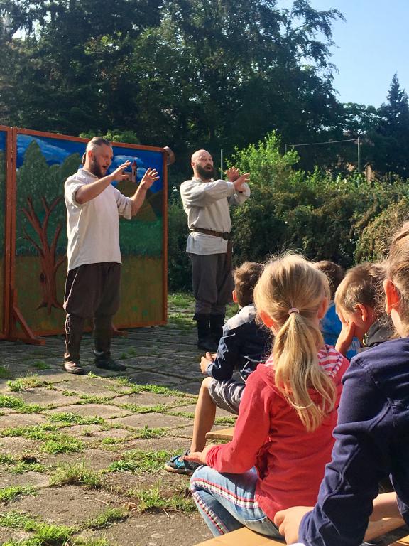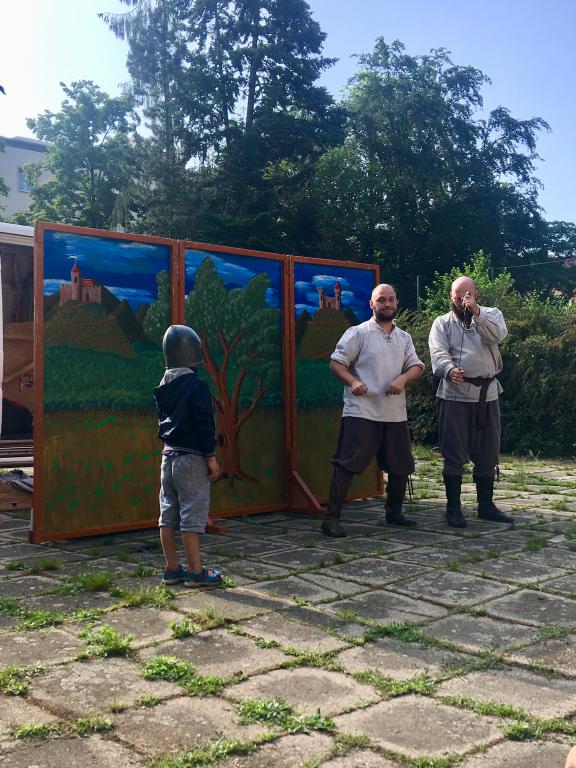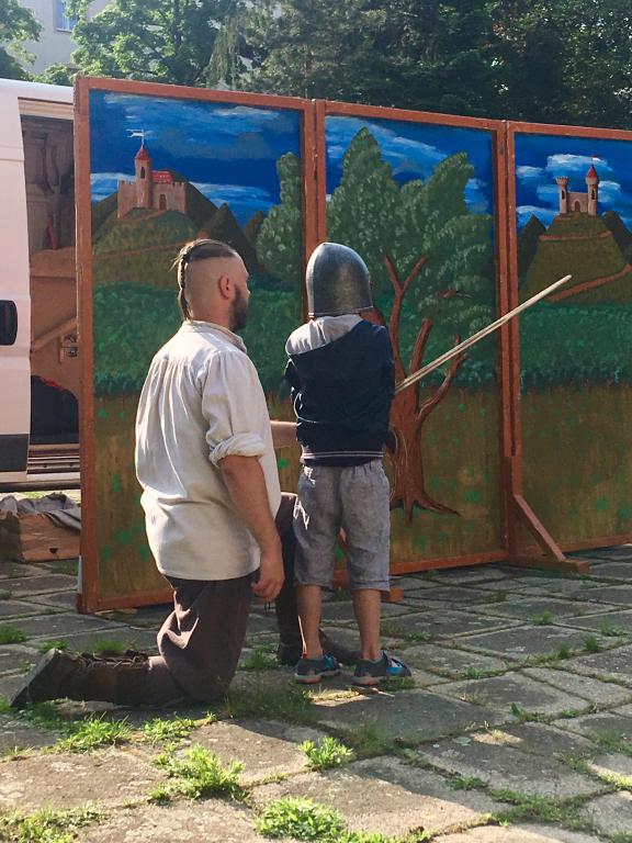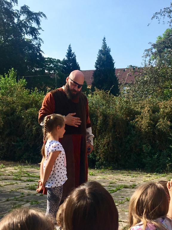 "Pojďme si hrát na dobu rytířů, princů a princezen"... tak se jmenoval pohádkový pogram, který jsme zhlédli na školní zahradě a který pro děti nastudovali členové skupiny historického šermu Perštejni.