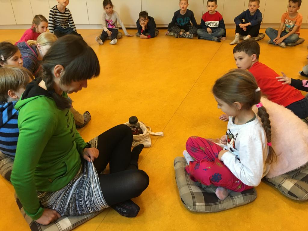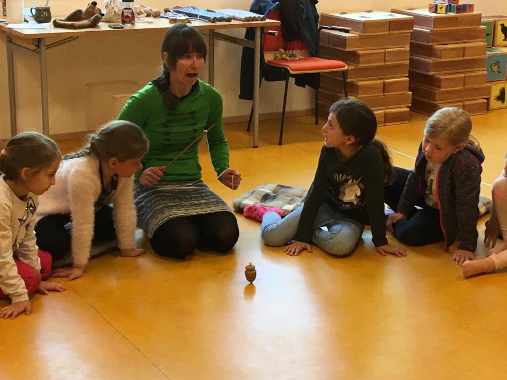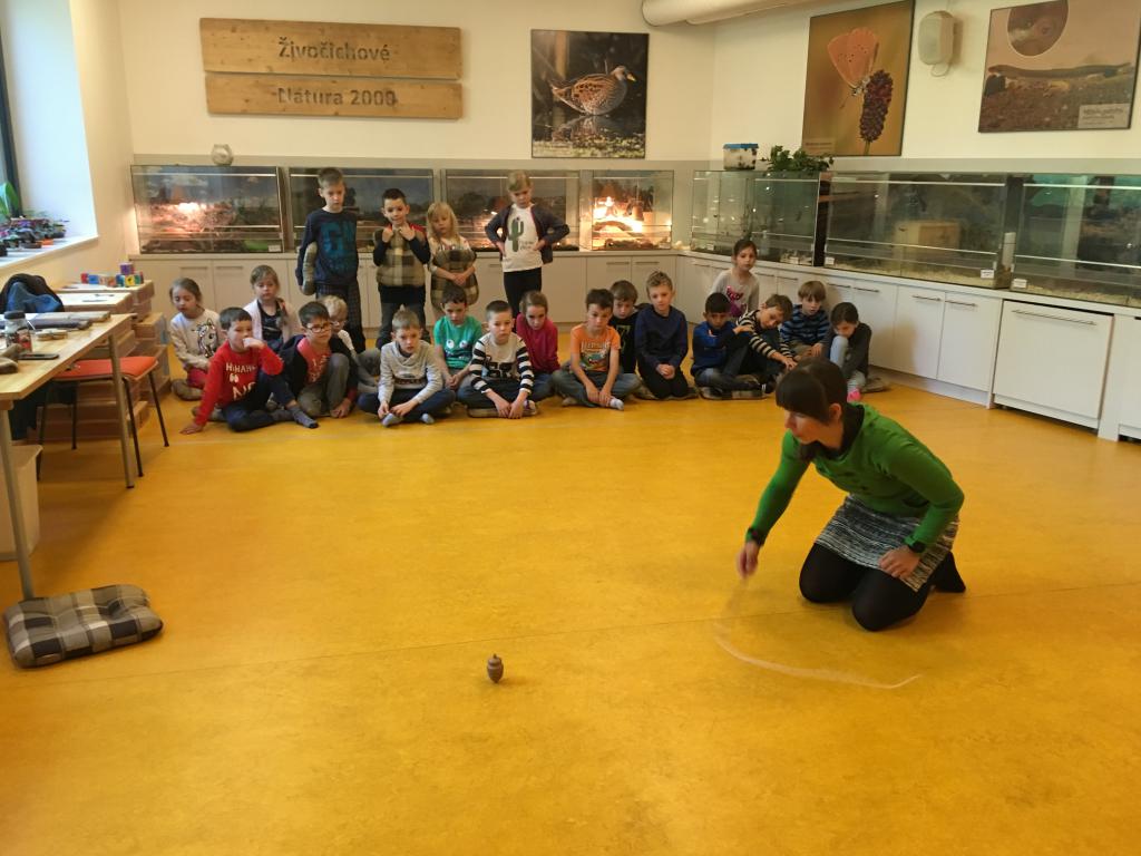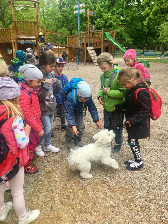 Týden v pořadí 36. se dělil opět do dvou částí. Před volnou středou a po ní. V pondělí ráno jsme vyrazili již podruhé v tomto školním roce do Ekocentra Paleta. Tentokrát nás čekal program Hračky. Vyzkoušeli jsme si hry našich praprarodičů jako jsou gorodky, tloukli jsme špačky, hráli počtářskou hru s oříšky a vyráběli panenky nebo točili Káču. :) Bylo to pro nás zajímavé a uteklo nám to jako nic.  Po svačině jsme se šli proběhnout do Bubeníkových sadů a potkali štěně Robču, o kterém jsme hodně slyšeli. Doprovodil nás až k bazénu. :)