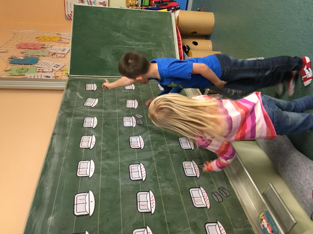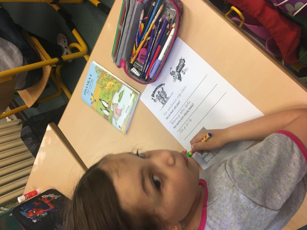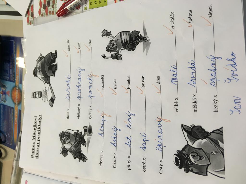 I další - v pořadí už 38. týden se odehrál v hokejovém duchu. Makali jsme pro tým i individuálně (ale i tak pro tým), až se z nás "kouřilo". :) Kromě matematiky a psaní jsme procvičovali také porozumění přečtenému textu a rozvíjeli fantazii. Četli jsme si ze dvou dětských knížek - "Sportovní pohádky" a "Nedáš - dostaneš". Příběhy o skřítkovi, který se naučil hrát výborně hokej, o rozepři sportovních rukavic nebo o hokejce, která ráda faulovala se dětem moc líbily. Kolo štěstí jsme roztočili také. Losování jsme popletené věty. Co ten rolbař upravil? Med nebo led? :) Nakonec jsme vše správně rozluštili.