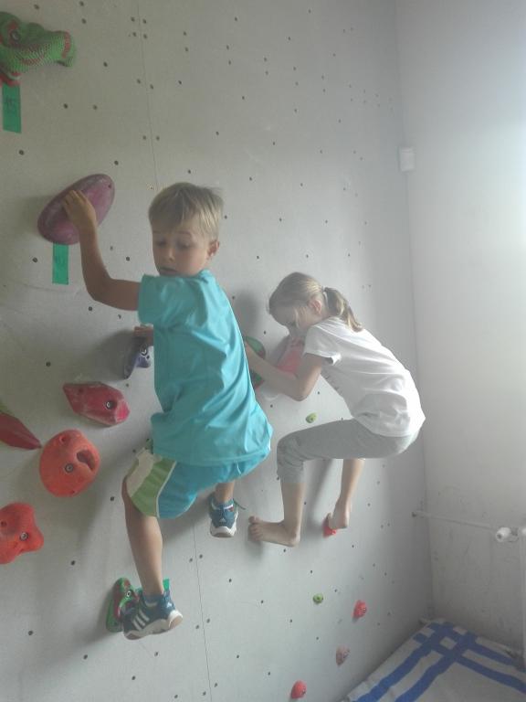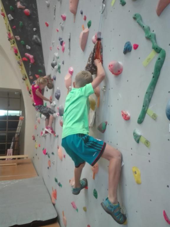 Dnes jsme opět vyrazili na horolezeckou stěnu na Sokol a šlo nám zase o něco lépe :). Stejně jako minule jsme plnili různé úkoly, které už byly o kousek těžší, ale my jsme se s tím statečně popralil. Na konci lezení nás ručičky trochu bolely :).