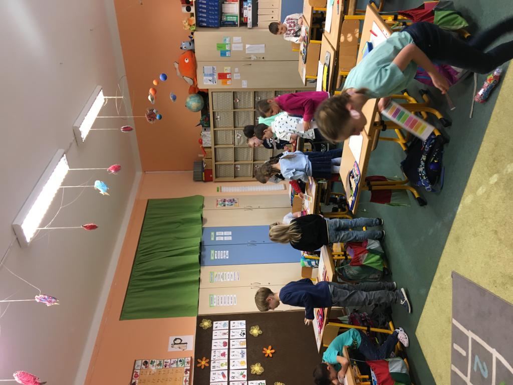 Poslední školní den tohoto týdne jsme si už "jen" potrápili hlavičky vyhledáváním jedno a dvouslabičných slov na kartičkách. Uhádnout pojmenování předmětu nebo činnosti byla někdy "fuška". Jako vše, co dělíme prvně a není tak úplně jednoduché. Některá pojmenování jsme ještě neznali a tak jsme si i trochu neplánovaně rozšiřovali slovní zásobu. Jak už je psáno o pár řádků výše - příště už nám to půjde mnohem snáz. :)