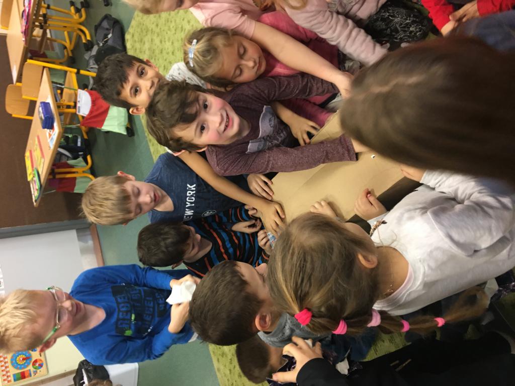 Po vánočních prázdninách jsme se sešli ve čtvrtek 4. ledna. Ještě u nás naděloval Ježíšek a byla to tak trochu záhada. "Vyklubal" se z ní nový koberec a trubky Bobotubes, na které se hraje. Ono s nimi jde dělat opravdu hodně věcí, ale mělo by se na ně hlavně hrát. Úderem o cokoli a to se nám samozřejmě líbilo. Kromě stupnice C-dur jsme zvládli zahrát i lidovou písničku "Kočka leze dírou". :)