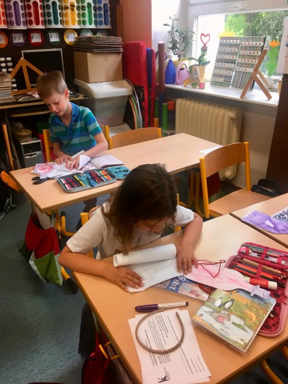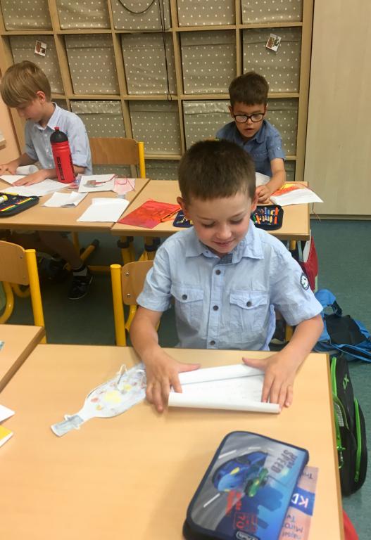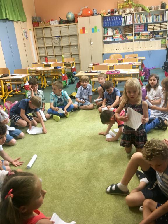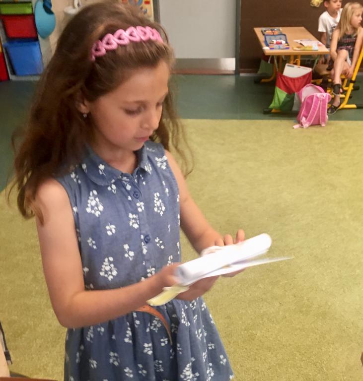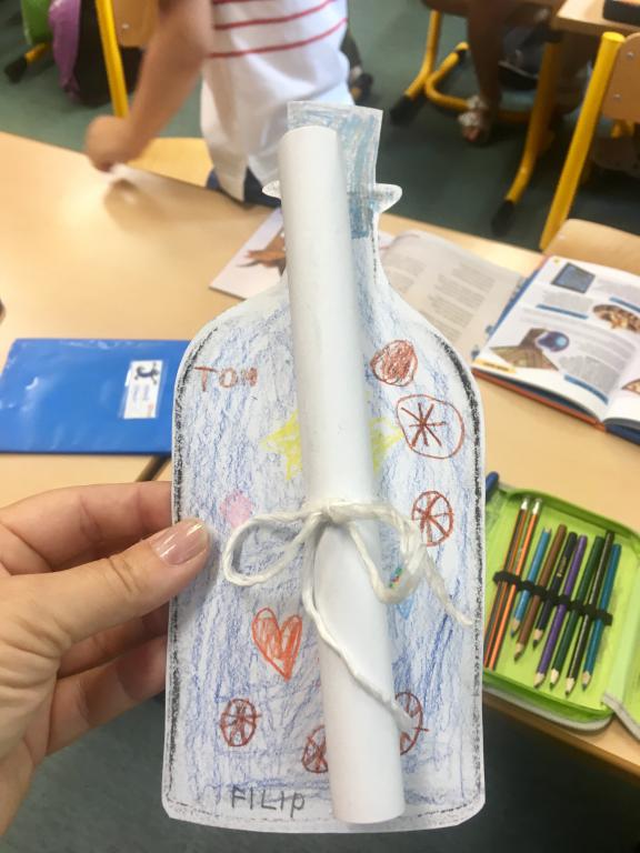 Když už jsme oficiálními čtenáři, využili jsme dnešní slavnostní atmosféru a ve škole si rozdali i naše vzkazy v láhvi od rodičů z prvního "rodičáku." Děti se nemohly dočkat, až si dopisy přečtou. Radost měly úplně všechny a některé to i dojalo. Kdo chtěl, mohl se pak svým vzkazem "pochlubit" spolužákům a přečíst ho nahlas. :)