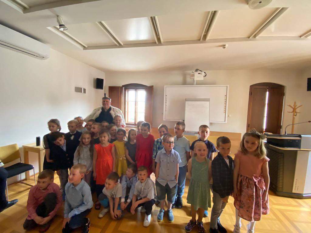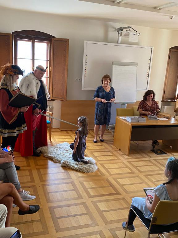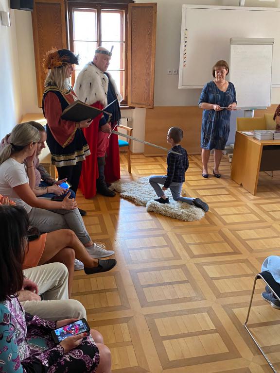 V pátek 27. 5. jsme byli panem králem pasováni na rytíře a rytířky krásného slova. Pro pana krále a naše rodiče jsme měli připravené krátké taneční představení. Po slavností akci jsme dostali za odměnu ještě zmrzlinu smiley