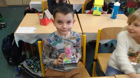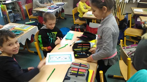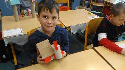 Máme stále co dělat! :) Už jsme se naučili číst slabiky "di, ti, ni... dě, tě, ně, bě, pě, vě, mě...", napíšeme malé i velké R a hravě zvládneme i psací "euro, au i ou". :) Spočítáme vše do dvaceti bez přechodu desítky a roční období nám nedělají žádný problém. :) Sice se nám občas ještě poplete malé tiskací "b a d", ale my to natrénujeme, žádný strach! :) I to počítací domino na + a - nakonec zmákneme úplně hravě. Bylo s přechodem a to jsme ještě netrénovali. B-) Do konce první třídy času dost! :) Kromě plavání a bruslení jsme také vyráběli domečky, garáže, lanovky... z krabiček, krabic a ruliček. Fantazii máme veeeelikou a moc se nám to vše povedlo. :) Slečna vychovatelka Lenka nás přihlásila do výtvarné soutěže na téma "voda". To bude teprve jízda! Zatím sbíráme náměty a vymýšlíme strategii tvorby. :D