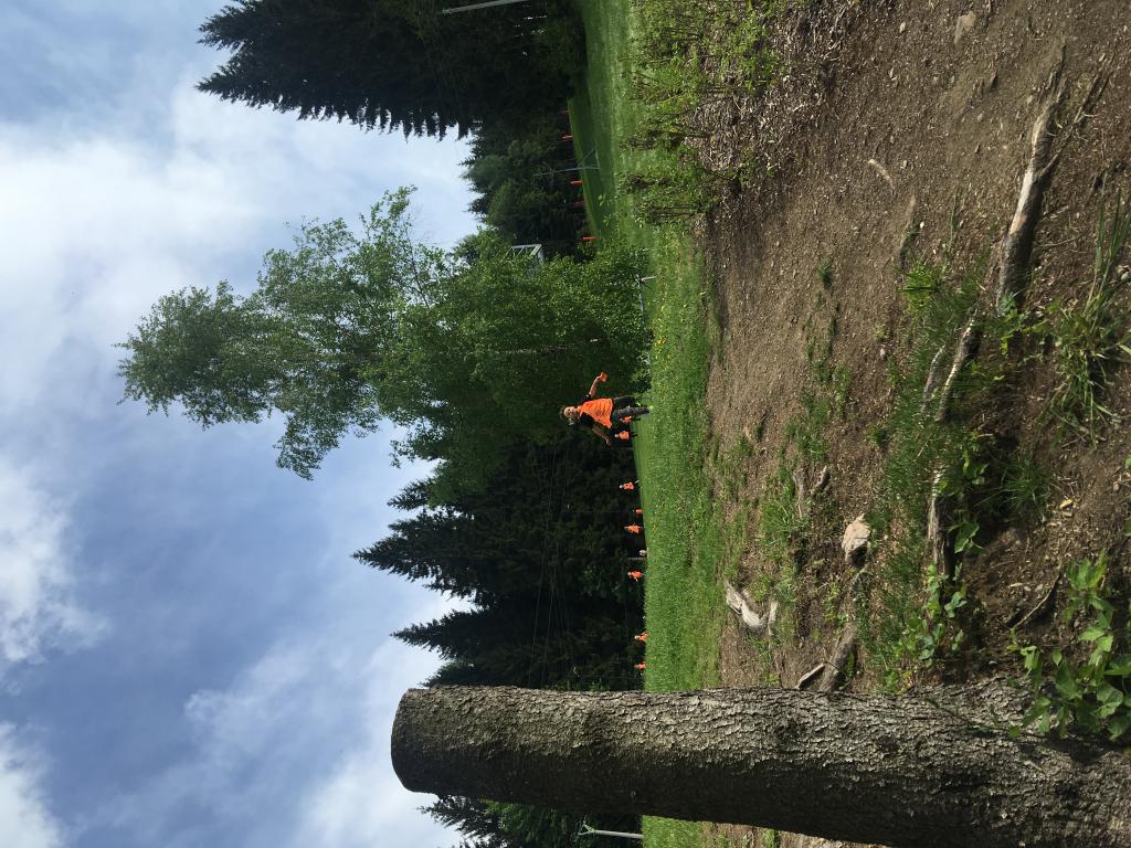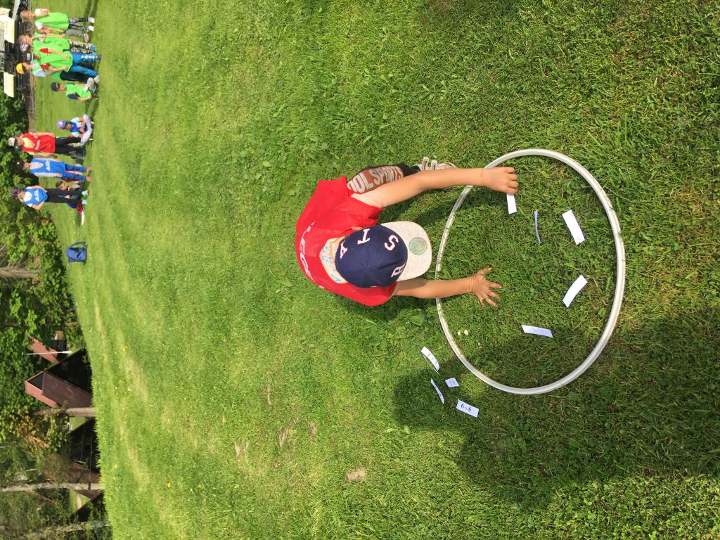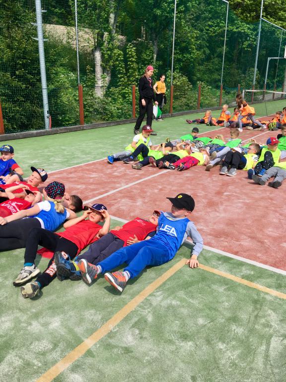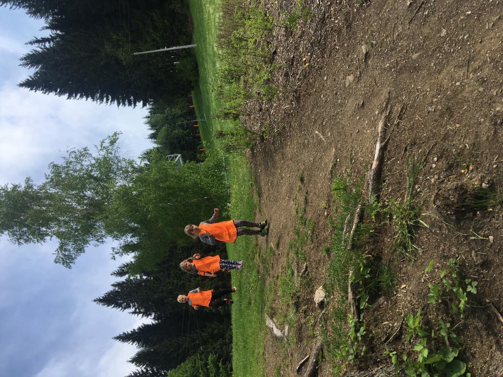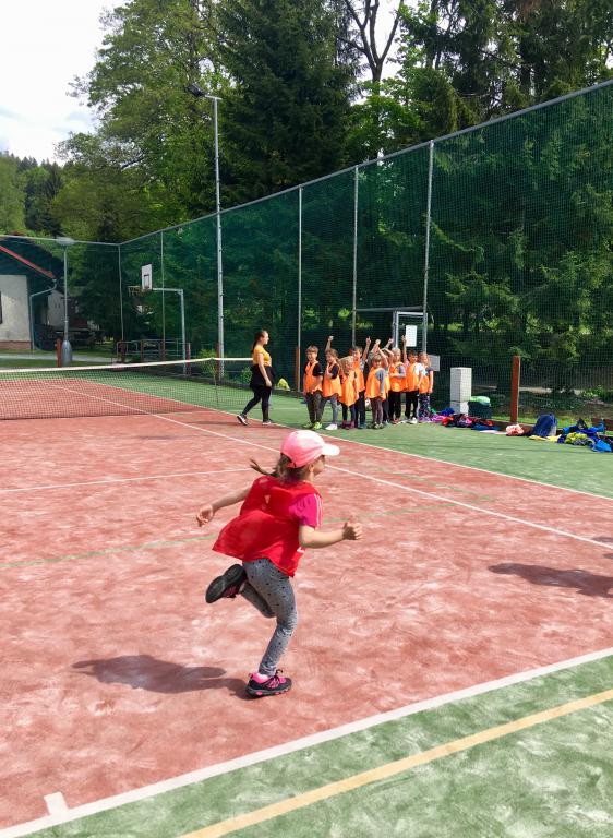 Po příjezdu jsme si pomohli vzájemně s kuframa a ubytovali se na pokojích. Po obědě nás čekalo rozdělení do čtyřech týmů (zelený, žlutý, oranžový a "barevný") a po té již první sportování. A ne jen tak obyčejné, ale pohádkové. Téma prvního soutěžního odpoledne jsme museli uhádnout podle tří různých postaviček. Byl to Dlouhý, Široký a Bystrozraký. A hned v následujících disciplínách jsme ve štafetě pracovali jak s délkou, tak s šířkou vlastních těl. :D Na kopci, který se jmenuje Kačenčina sjezdovka, jsme hledali zlaté rybky, pak jsme se snažili rozluštit kód pro odemčení hradu a ve volné chvilce jsme stavěli domečky v lese. :)
