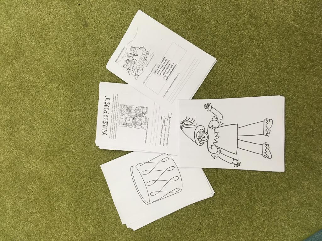 Frčelo nám to i tento týden a to líp než po dálnici. :) V úterý jsme si udělali masopustní vyučování. Už víme, které masky patří do průvodu maškar a jaký měli význam. Tom jako Turek sklidil velký obdiv i u paní ředitelky, která se na nás přišla podívat. Navštívily nás i děti z 5.B, které nám zkontrolovaly úkoly v masopustních pracovních listech. Také už známe co je postní doba a půst. Něterým dětem by toto období vyhovovalo celoročně.:) K masopustu patří maska Strakatý, kterého jsme si dle fantazie vybarvili a také buben! Ten náš jsme se učili kreslit jedním tahem. Nechyběly úkoly pro chytré hlavičky. Ze slova "masopust" jsme skládali jiná slova. Z písmenek jsme jich složili 33. Protože nás to moc bavilo, zopakovali jsme si znovu se slovem "Velikonoce". Počet složených slov byl ještě větší - 44! :)