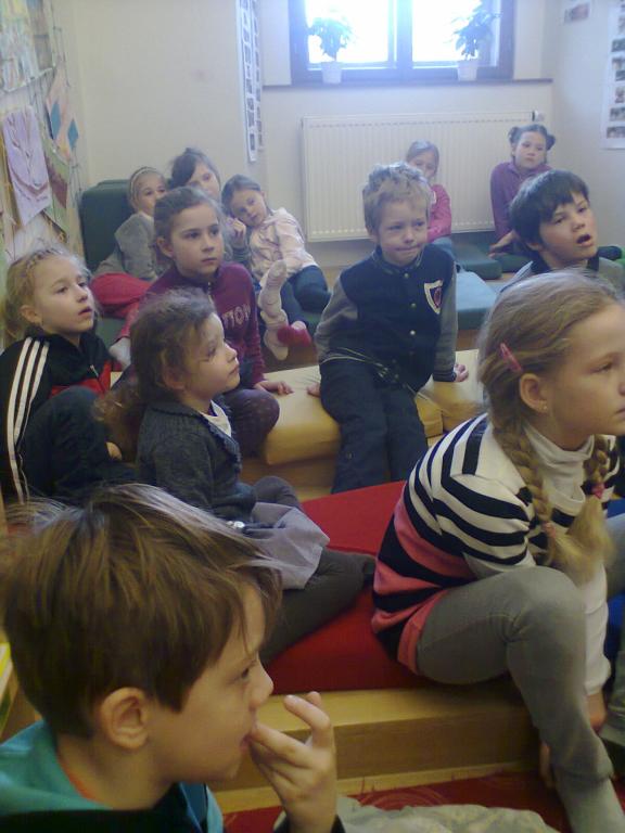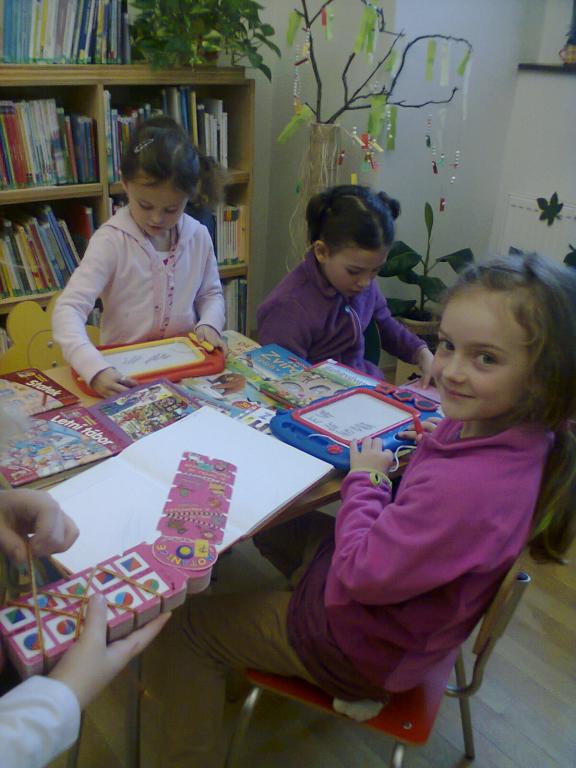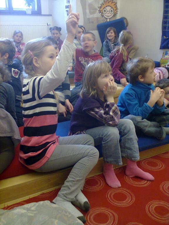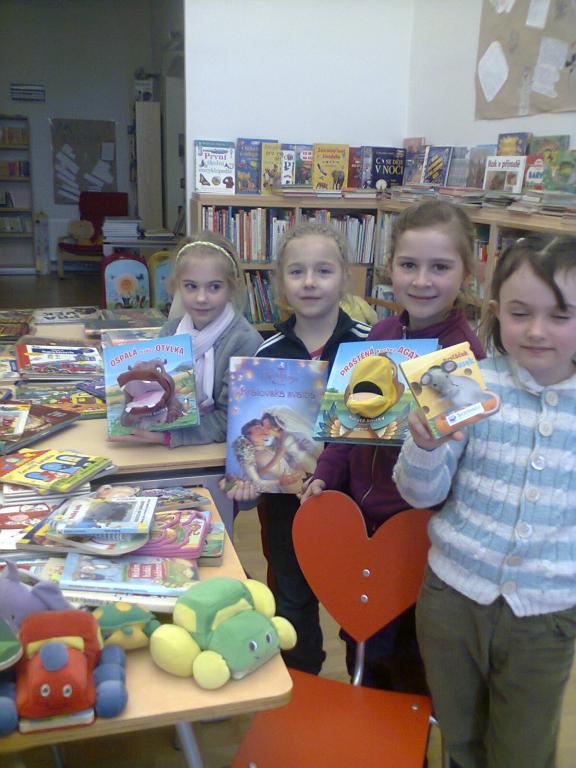 Březen - MĚSÍC KNIHY si každý den ve škole připomínáme desetiminutovým čtením svých knížek. Společně jsme navštívili krajskou knihovnu. Prohlédli jsme si ji a seznámili se s půjčováním knih pro děti. Těšíme se na další návštěvu - Pohádkový svět.