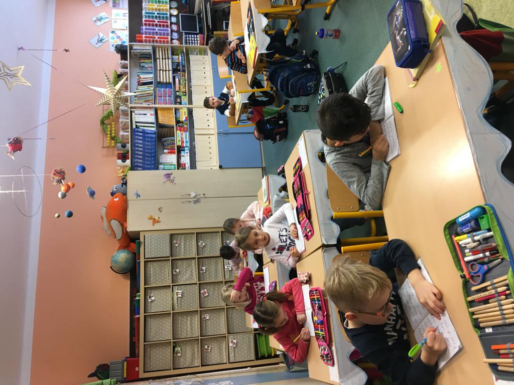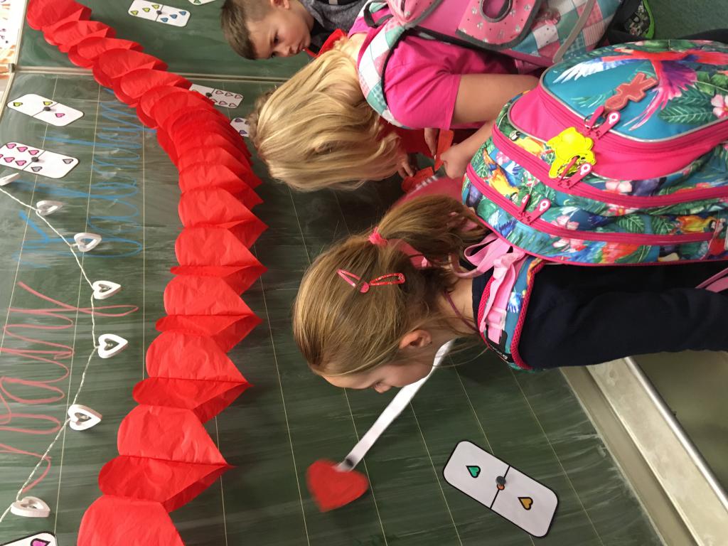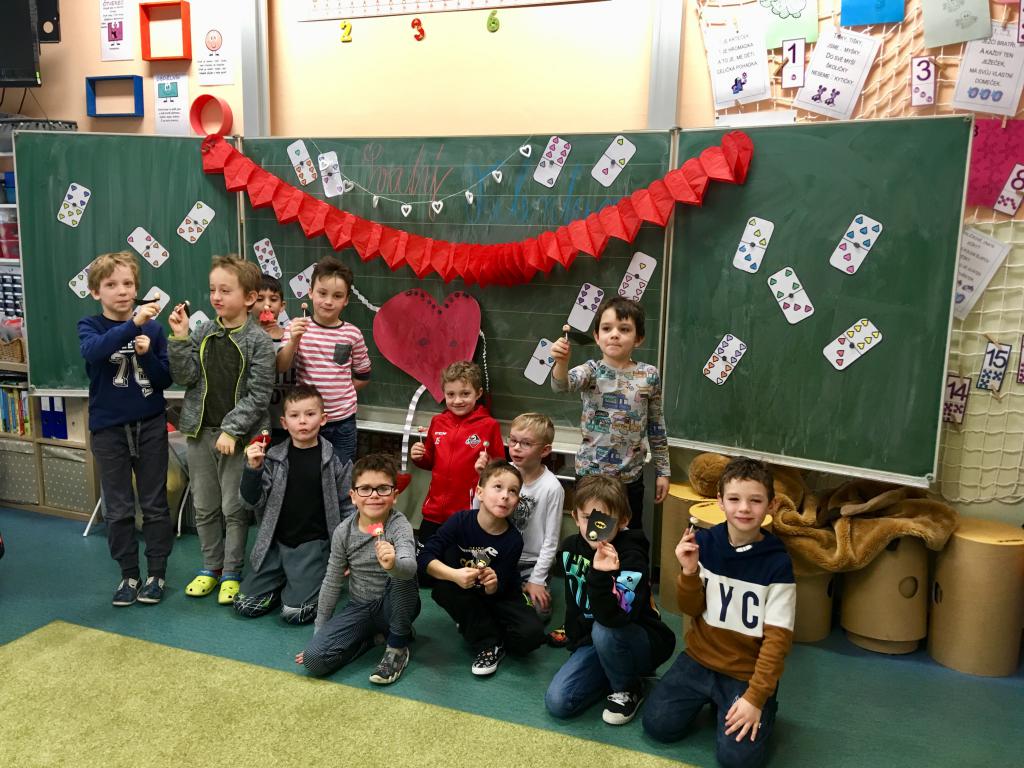 Po jarních prázdninách jsme měli "na pilno." Povyprávěli jsme si zážitky z uplynulého týdne, pilní čtenáři nám přinesli ukázat a někteří i odprezentovat přečtené nebo rozečtené knížky. Do písanky už píšeme perem a jde to všem parádně! Ve středu jsme vyráběli přáníčka a srdíčkové myšky pro děti z 1. A ze ZŠ Choltice. Na oplátku jsme dostali ve čtvrtek krásné valentýnské srdce, které děti podepsaly a battmanská a kočičková lízatka. :) Ve čtvrtek jsme už sto dní školákama, byl svátek svatého Valentýna a také jsme byli bruslit. :)