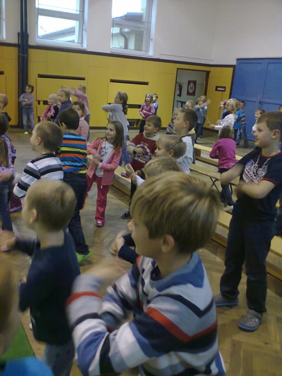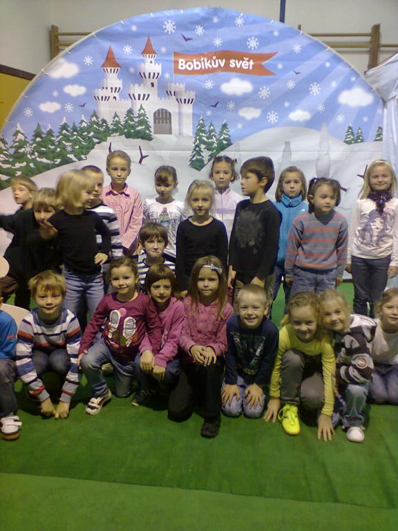 Do naší školy zavítal Bobík se svými kamarády. Připravil pro nás soutěže a naučil nás tancovat.