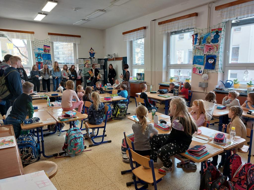 Se silným větrem, který se žene naší vlastí, odchází zima a pomalu na scénu přichází jaro. A jak jinak začít jaro než s dobrou knížkou a udělání někoho šťastným? Přesně v tomto duchu jsme se jako třída ve středu 16.2. vydali za prvňáčkama na čtenářskou dílnu.