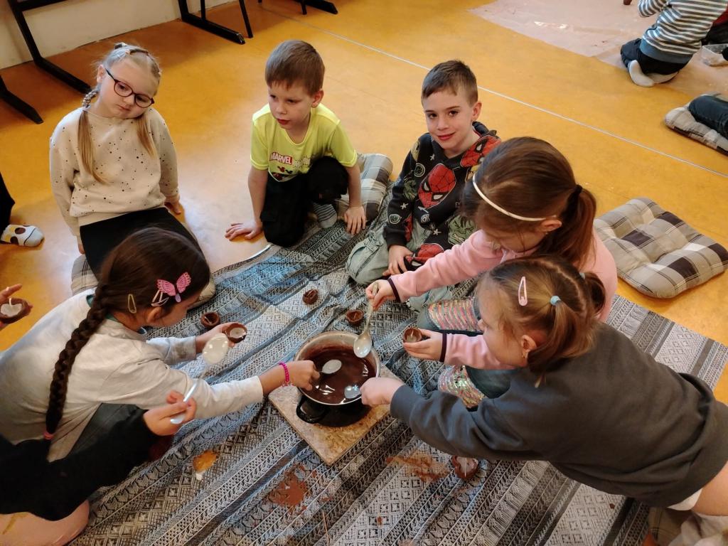 V pondělí 8.12. jsme se brzy ráno vypravili do Ekocentra Paleta. Tam už na nás čekal lektor s připraveným programem „Výroba svíček“. Děti si mohly vyzkoušet výrobu svíček z parafínu. Každý si nakonec domů odnesl dvě vlastnoručně vytvořené svíčky.