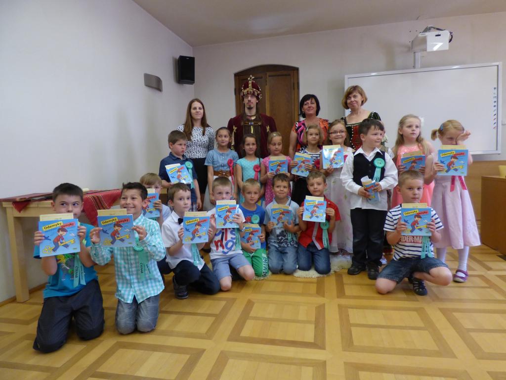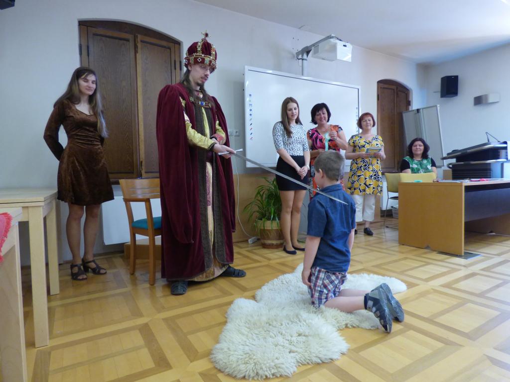Dne 3. 6. proběhlo v krajské knihovně očekávané slavnostní pasování našich prvňáčků na čtenáře. Děti z 1. B předvedly svůj program, který dokonale zakončily písní Abeceda. Rodiče i ostatní diváci byli nadšeni, co jejich prvňáčci již umí. Za zvuku fanfáry byli všichni pasováni králem na čtenáře. Kromě dekorování děti dostaly krásnou knížku. Velké díky patří p. J. Kyclové, která nás pasováním provázela. Sladkou tečkou byla pro děti zmrzlina, či slavnostní oběd.