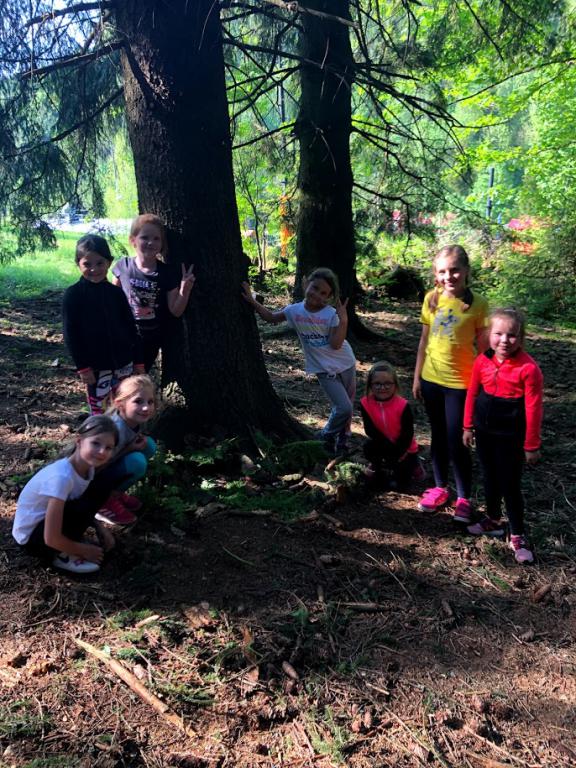 Po příjezdu jsme se ubytovali a čekal nás první velký úkol - povléknout postele. Bylo to náročné, ale s pomocí paní učitelky a paní vychovatelky jsme to zvládli a vydali se na první oběd. Odpoledne jsme se rozdělili do čtyř týmů - červeného, žlutého, oranžového a modrého a celý týden jsme se snažili společně se svými parťáky získat pro tým co nejvíce bodů v různých disciplínách, které vedly paní učitelky, paní vychovatelka a trenérka Týna - běhu do vrchu, skoku do dálky, trojskoku, přetahu lanem, hvězdicovém běhu, postřehovém závodu, vybíjené, štafetě a dalších. Taky jsme v lese stavěli domečky, opekli jsme si buřty a zažili parádní diskotéku.