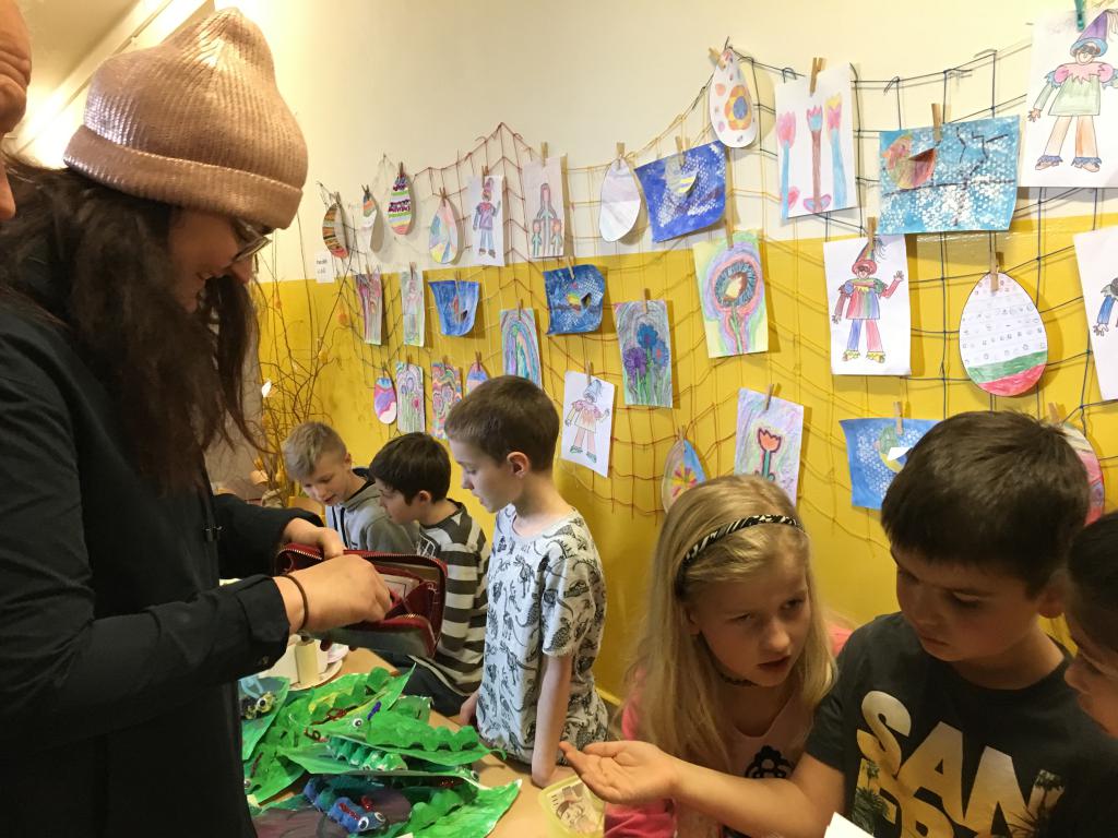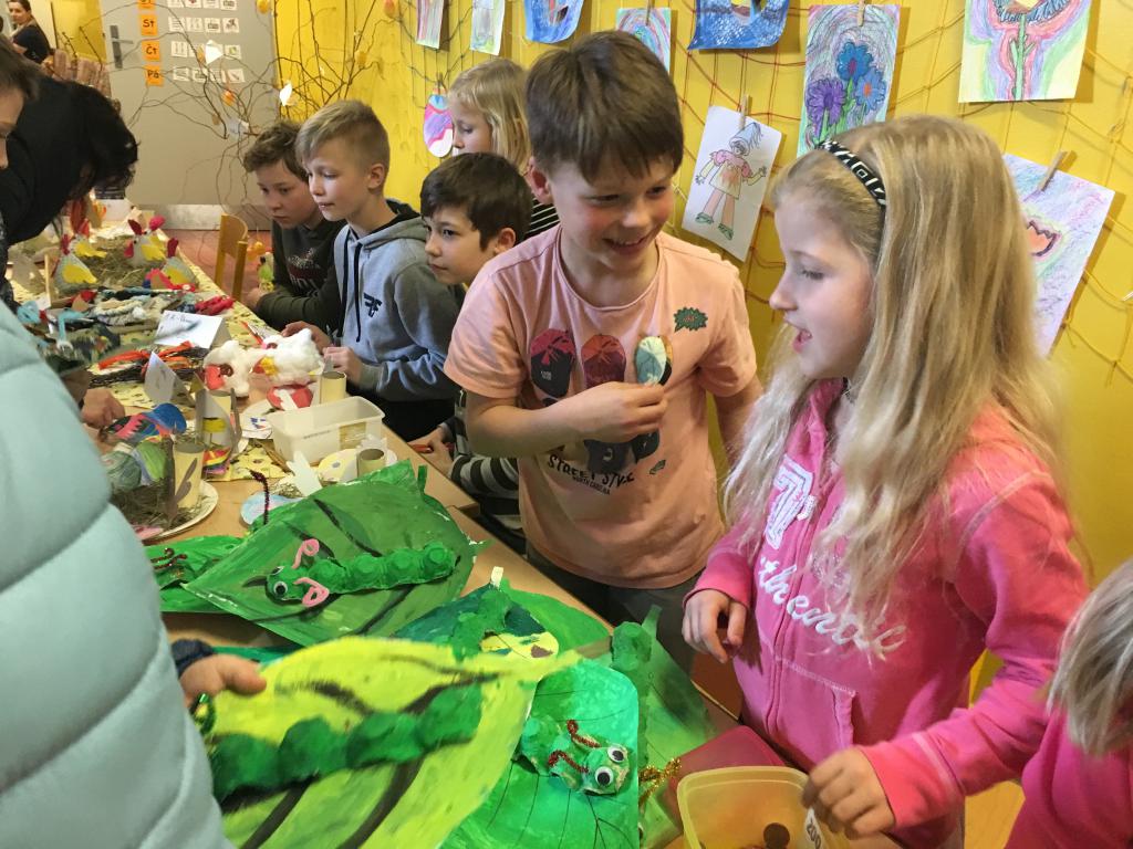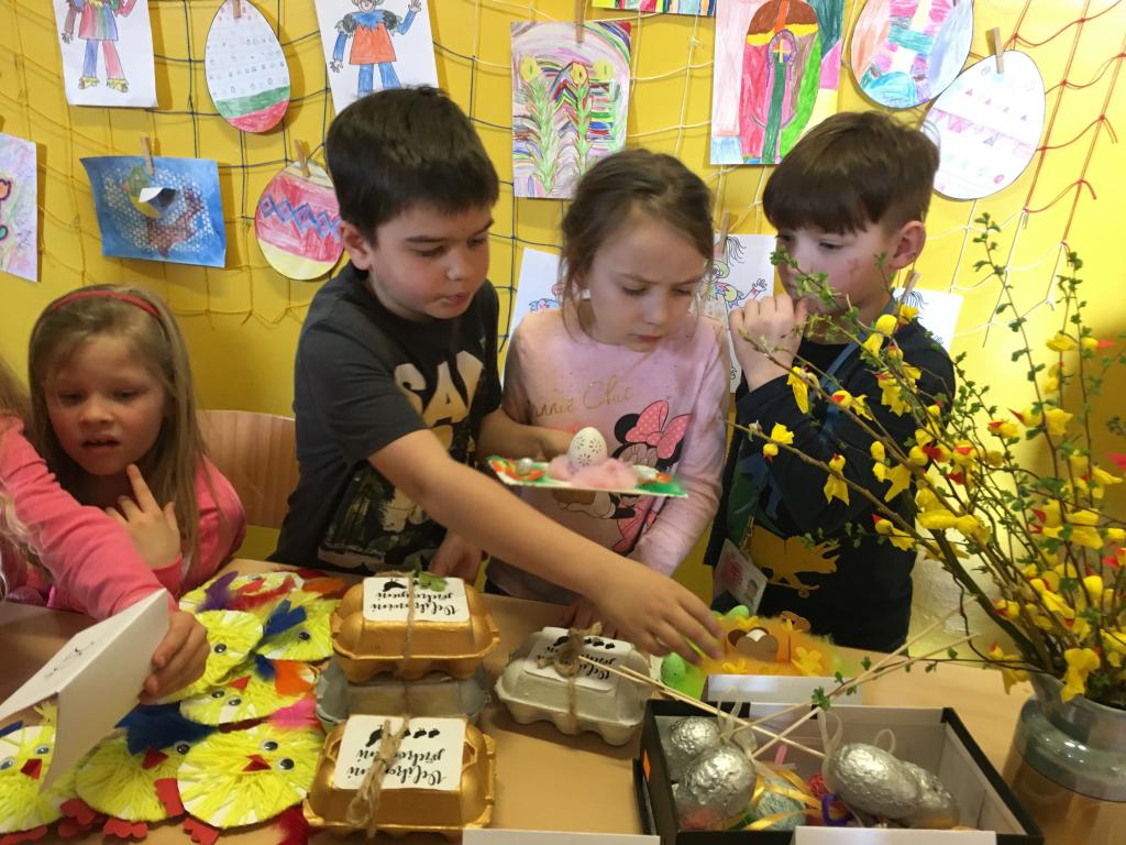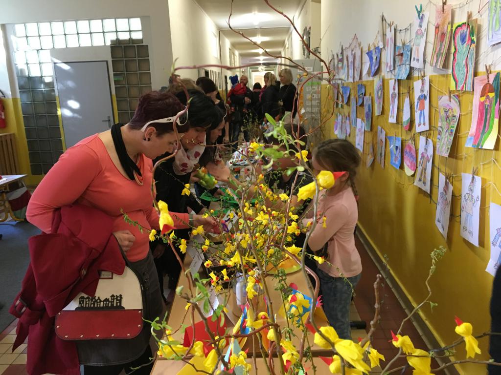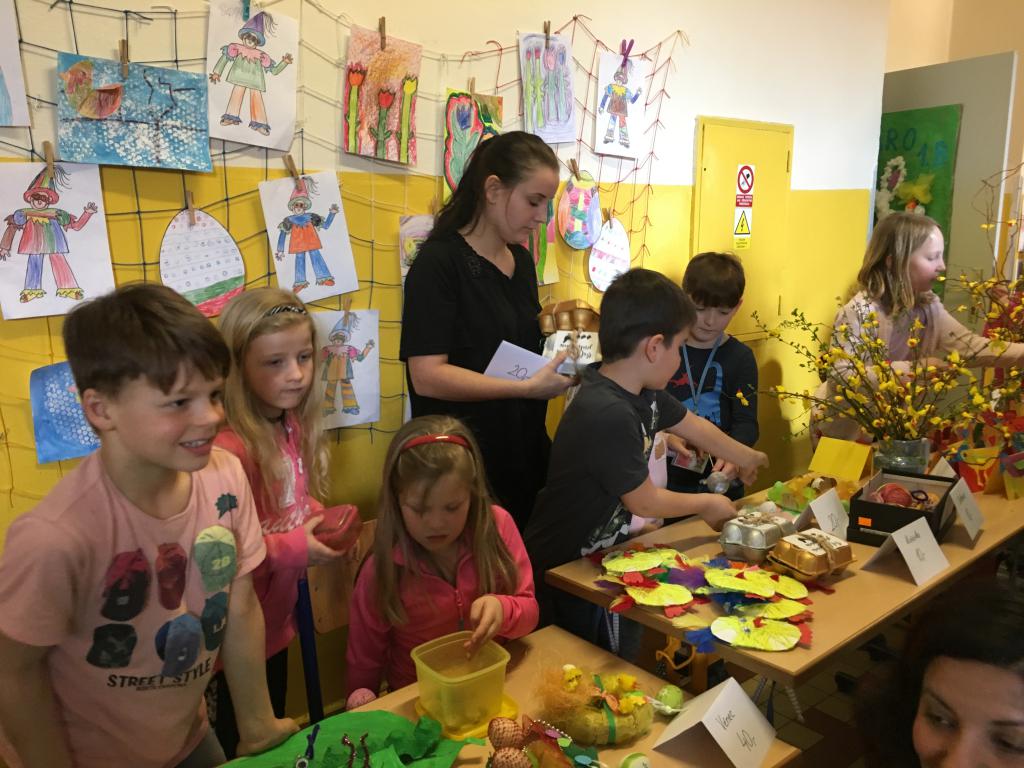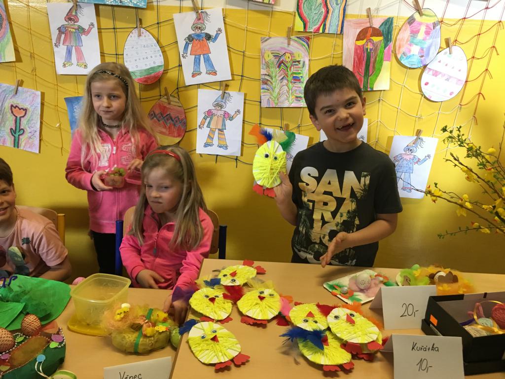 Ve středu 27. 3. se uskutečníl Velikonoční jarmark. My, žáčci 1. B, jsme zde prodávali své výrobky, které jsme týden předtím s paní učitelkou a s maminkama vyráběli. Největší úspěch měly jednoznačně housenky na listech, líbila se ale i kuřátka, vajíčka i velikonoční věnečky. Velikonoční dekorace k nám přišli nakoupit maminky, tatínkové, babičky i dědečkové a jupííí - prodali jsme všechno! :-) A musíme dodat, že to byla velká legrace a moc jsme si role "prodavačů" užili!