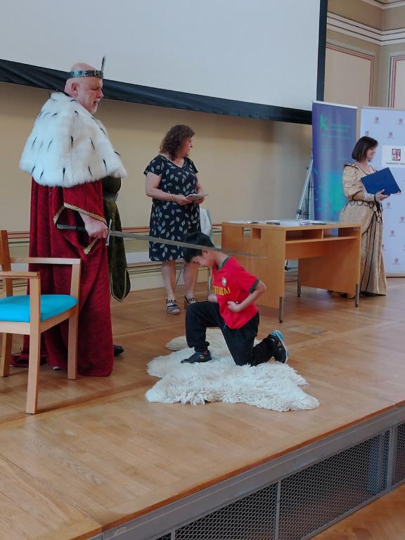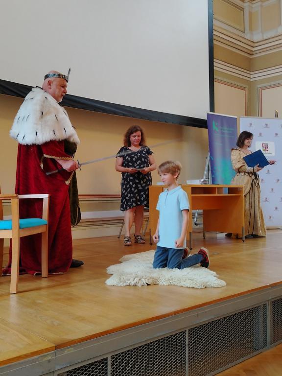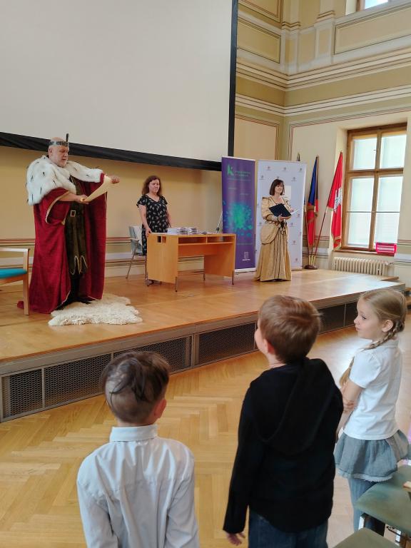 Po příchodu krále děti společně s paní učitelkou předvedly krátké vystoupení a samotné pasování mohlo začít.