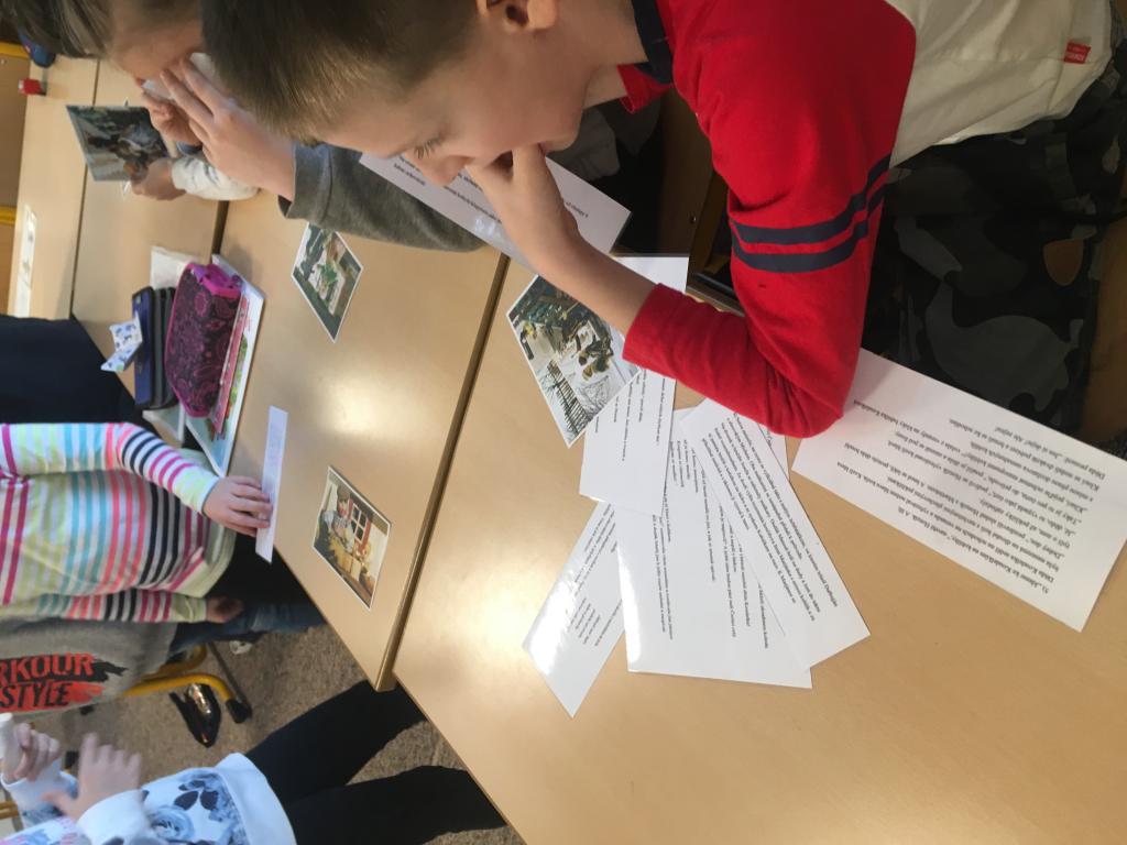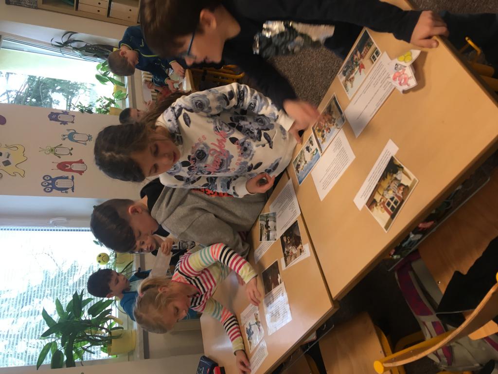 Masopustní veselí jsme si ještě zopakovali při čtení. Vytištěný text z příběhu "Chaloupka na vršku" jsme měli přiřazovat k obrázkům. Kromě porozumění přečtenému textu bylo důležité se také ve skupině domluvit a to šlo chvílemí hůř než to čtení...
