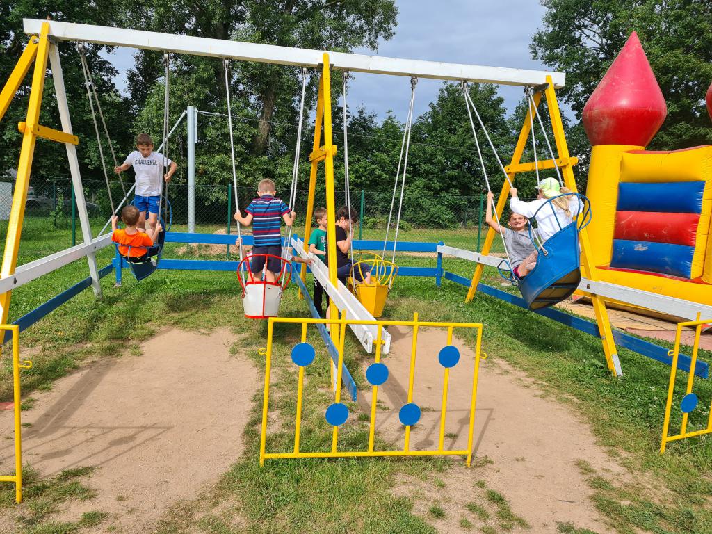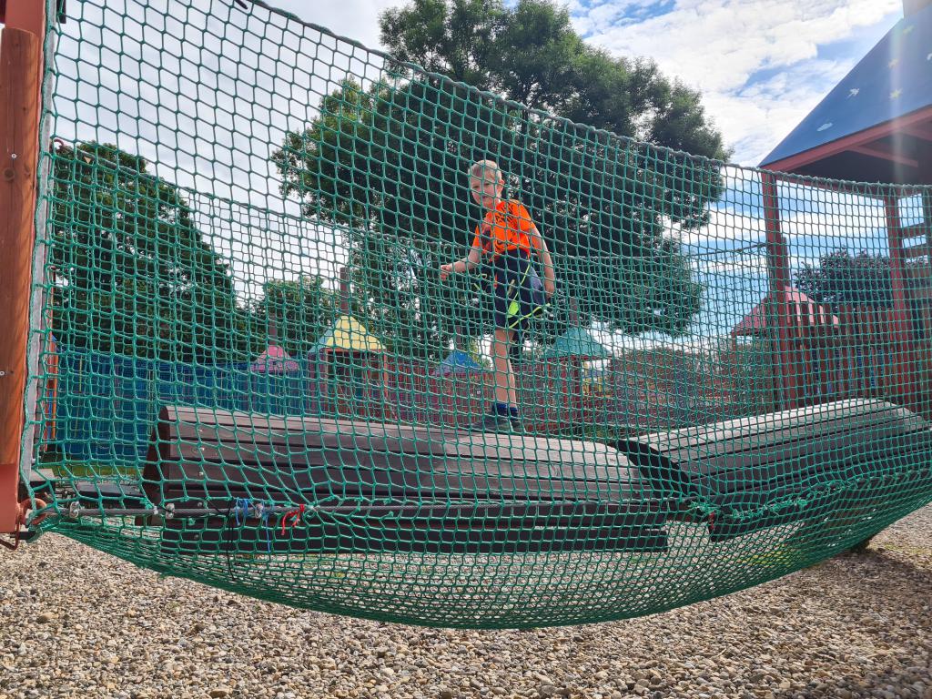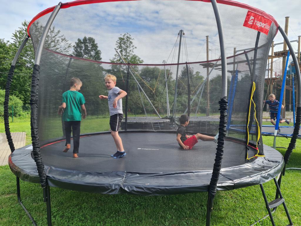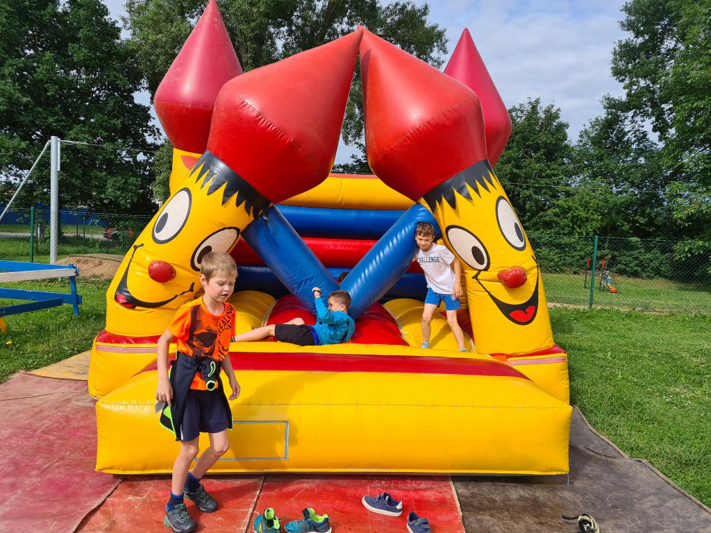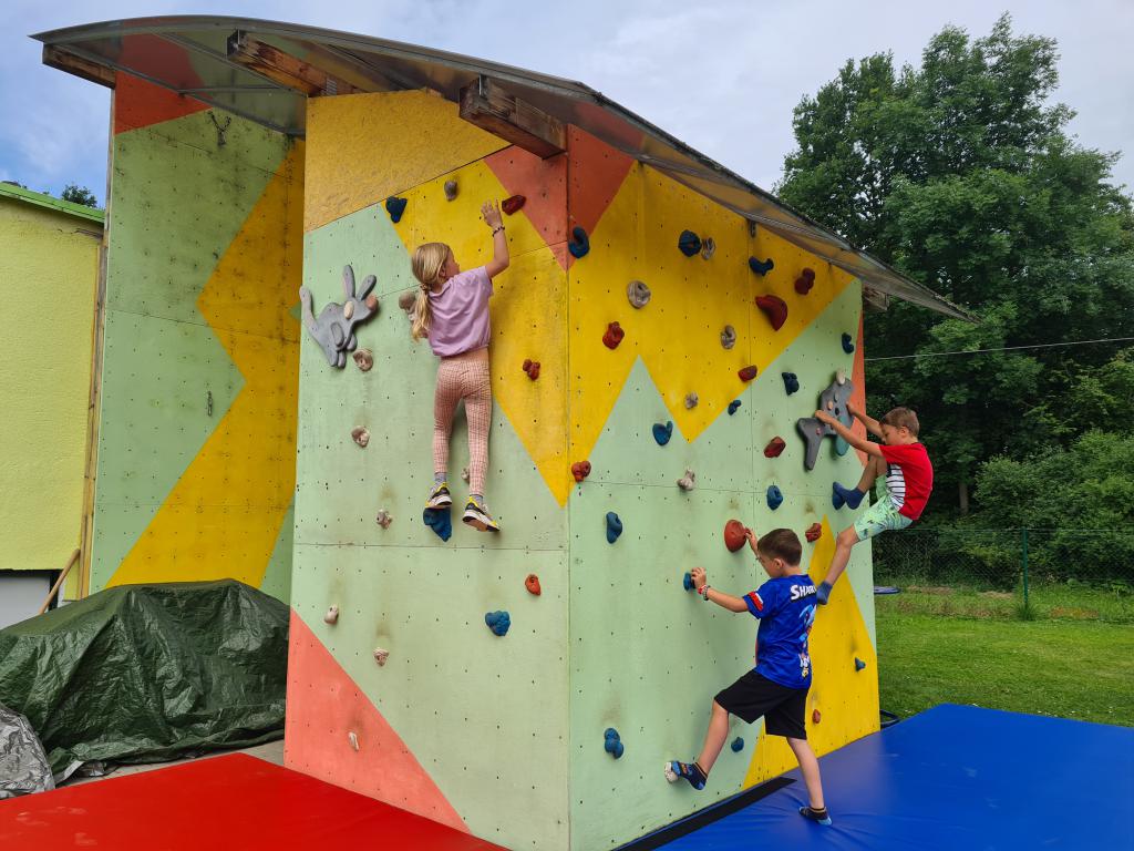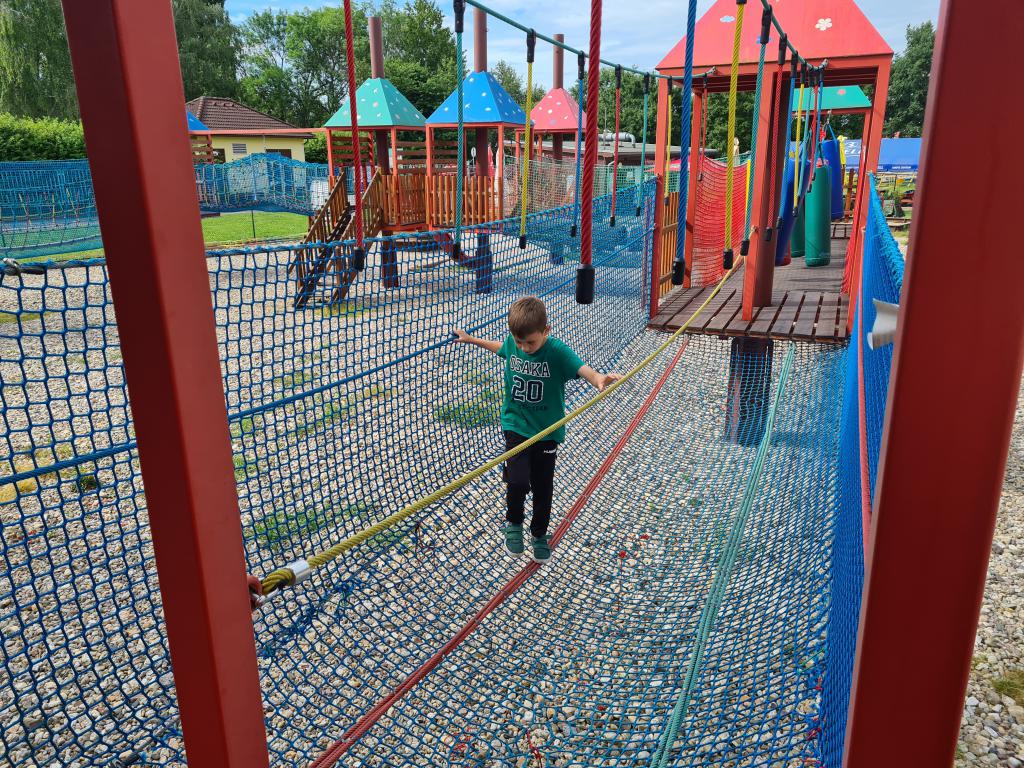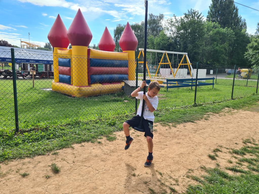 Čekal na nás lanáček, trampolíny, lezecká stěna, skákací hrad, houpačky, lanovka, kopaná a dobré občerstvení.