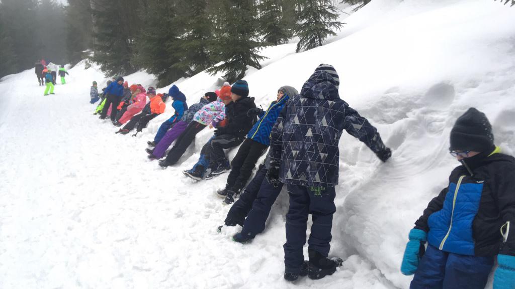Na sjezdovce jsme si sjeli kousek kopce a rozdělili se do družstev. A pak už jsme trénovali v nich. Pár dětí si lyže obulo poprvé a popraly se s nimi vážně statečně. Návrat na chatu byl po dvanácté hodině. V jednu na nás čekal opět výborný oběd. Někteří borci zvládli i dvě porce kuřecího stehna s bramborem. :)