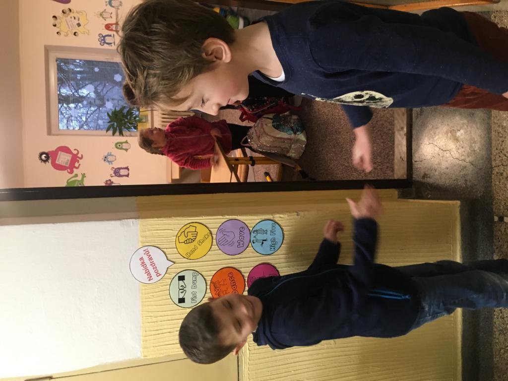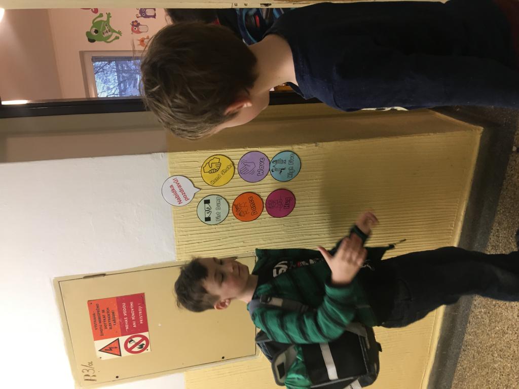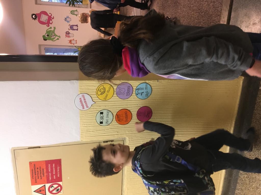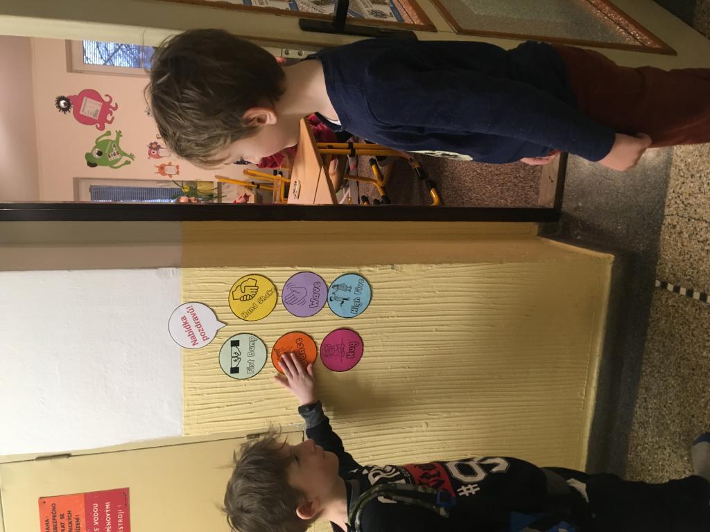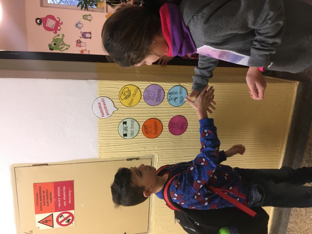 O spolupráci a týmovém duchu nejsou jen naše hodiny tělesné výchovy a pohybových her, ale i změna u našich dveří do učebny. :) V pondělí se vítáme s paní učitelkou, ale další dny se vítáme vždy s jedním z nás. :) A po odpolednech se někteří z nás v drůže chystají na svou budoucí profesi. Některé holčičky budou zcela jistě paní učitelky. :)