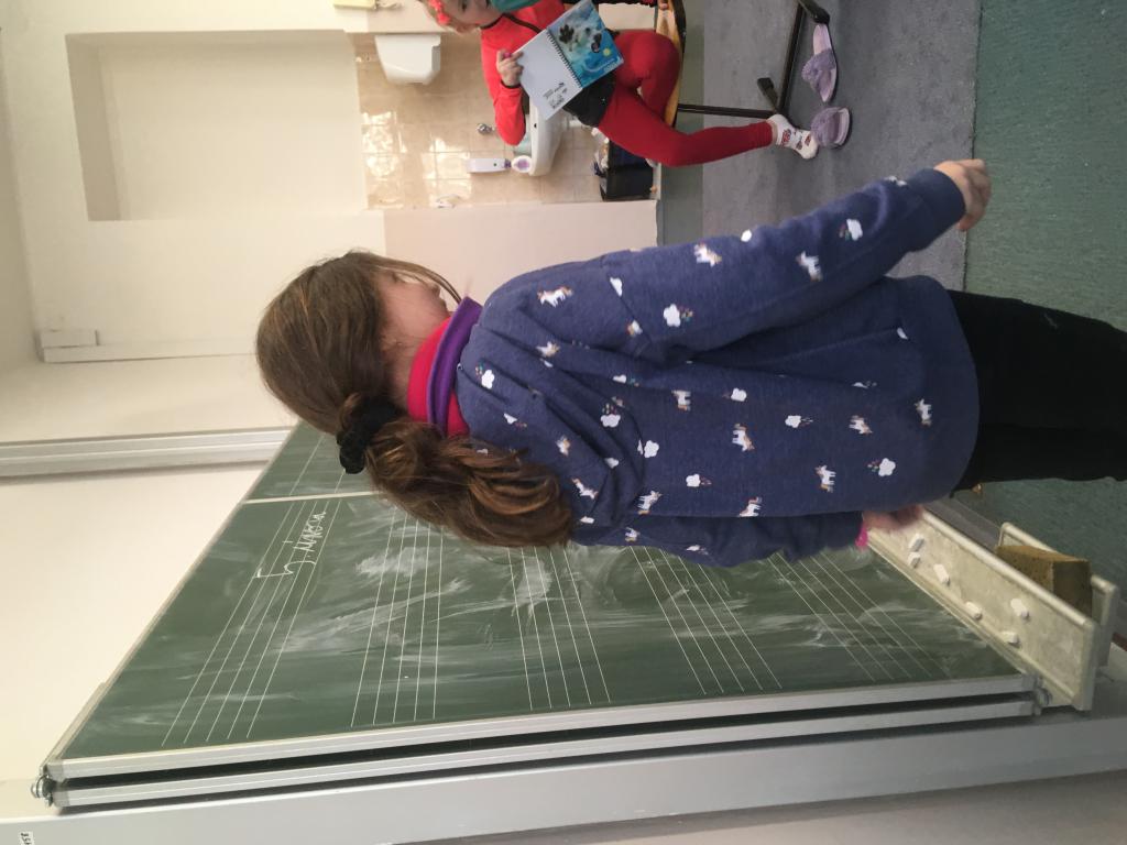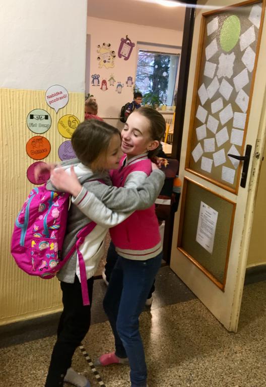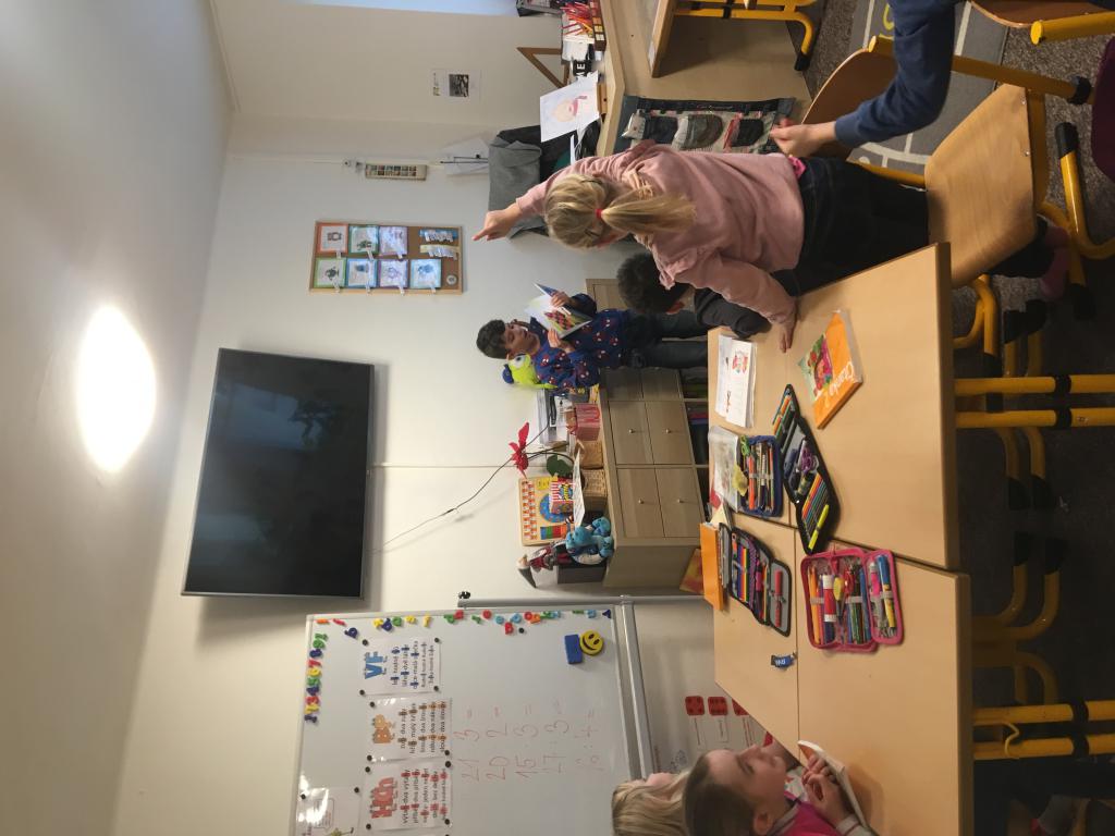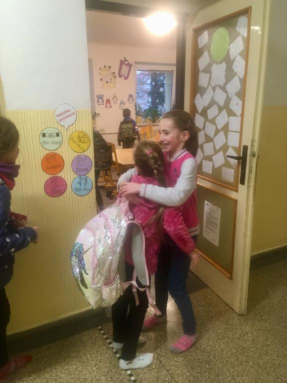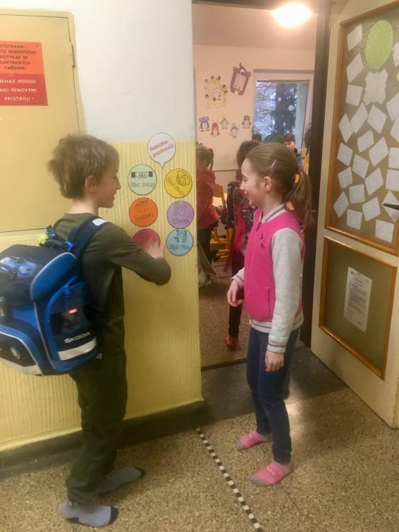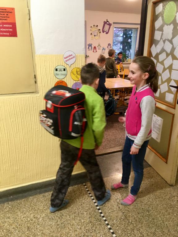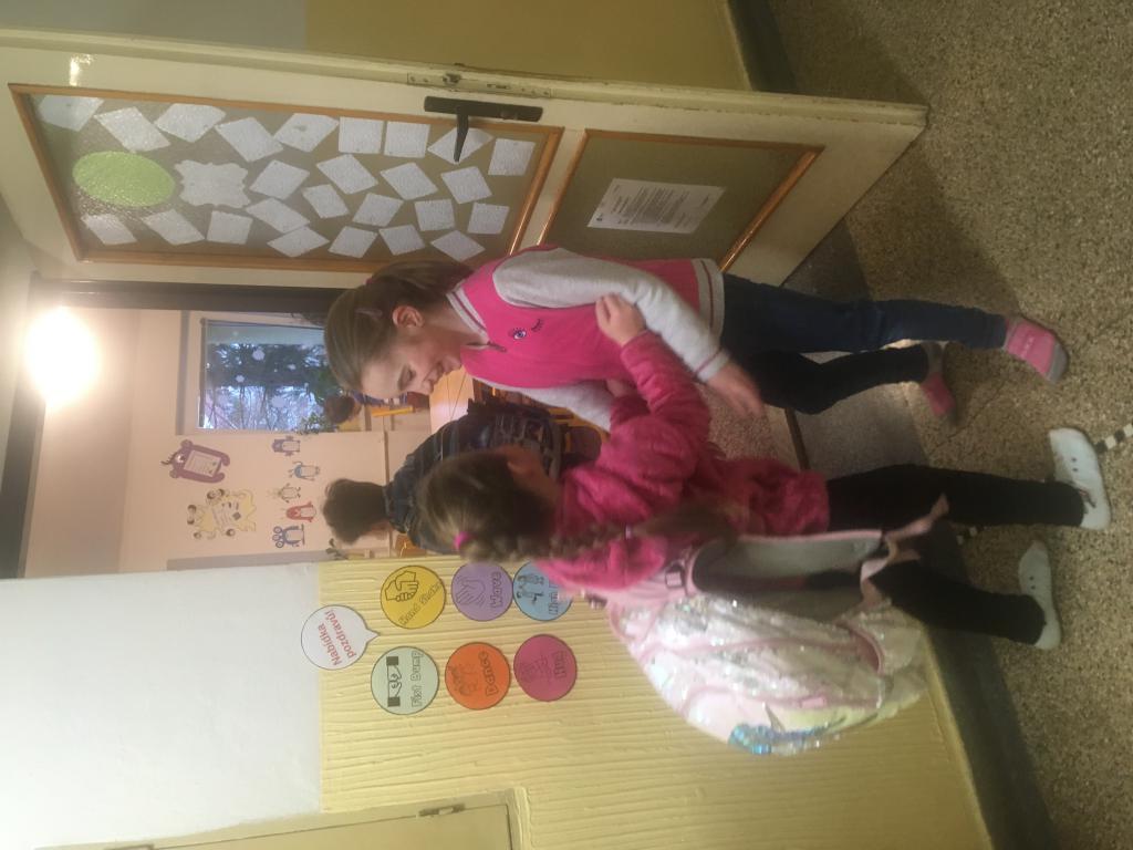 O spolupráci a týmovém duchu nejsou jen naše hodiny tělesné výchovy a pohybových her, ale i změna u našich dveří do učebny. :) V pondělí se vítáme s paní učitelkou, ale další dny se vítáme vždy s jedním z nás. :) A po odpolednech se někteří z nás v drůže chystají na svou budoucí profesi. Některé holčičky budou zcela jistě paní učitelky. :)
