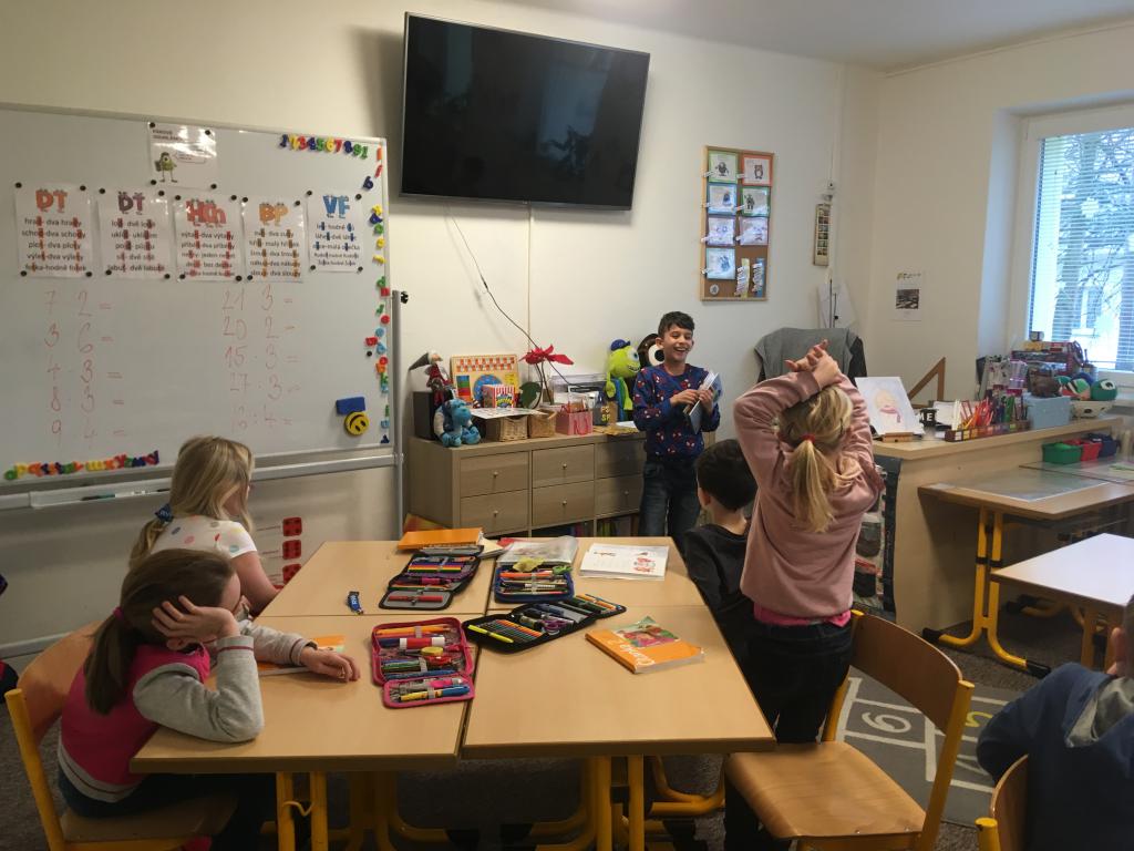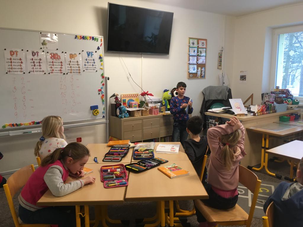 Školní rok se nám "přehoupl" do druhé poloviny. Naše áčko nezahálí a frčí dál. Už píšeme jako draci a učíme se psát i správně gramaticky. Po měkkých a trvdých přišly na řadu souhlásky párové. Učíme se, že ne vše co slyšíme, se tak i píše. A to objevování nás baví. :) Stejně tak i matematika a v ní násobilka. V prvouce charakterizujeme jednotlivé měsíce i období roku a orientujeme se v denní i noční době. Trochu se nám plete velká a malá ručička u hodin, ale to ještě procvičíme. Jako vše. :) Také stále prezentujeme nové knížky, které jsme si doma přečetli a zaznamenali. Třeba jako Markus, který si vybral a zdolal životopis fotbalového mága Messiho. :)