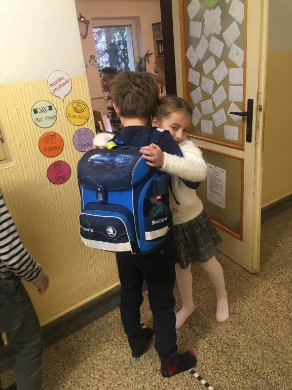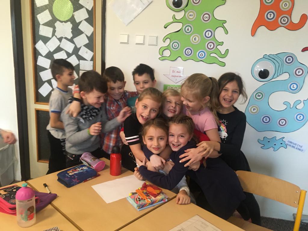 Takže co nás baví? Učit se a dostávat jedničky - někoho matika, někoho čeština, přestávky..., ale nebaví nás chození na intr a zpět a nošení reflexních vestiček... a všichni se strašně moc těší na naši staronovou třídu na Benešovce. Úplně nakonec jsme se rozloučili se Sárou, "vybavili" jsme ji do nové školy bločkem, barevnou tužkou... a popřáli ji hodně štěstí.