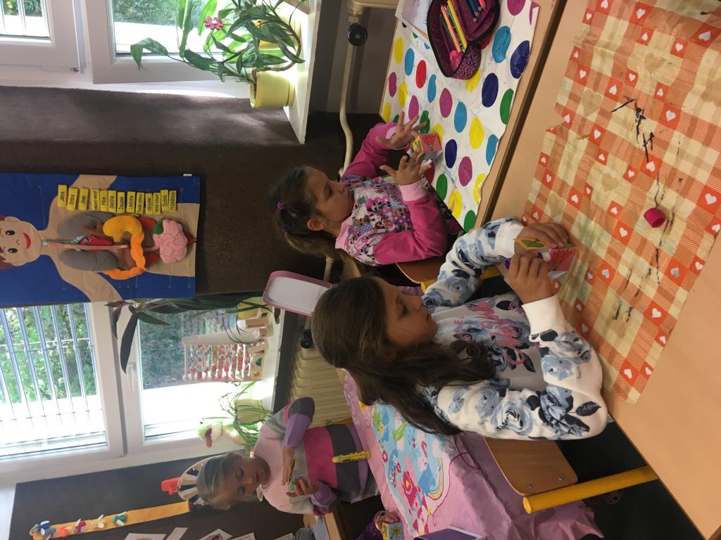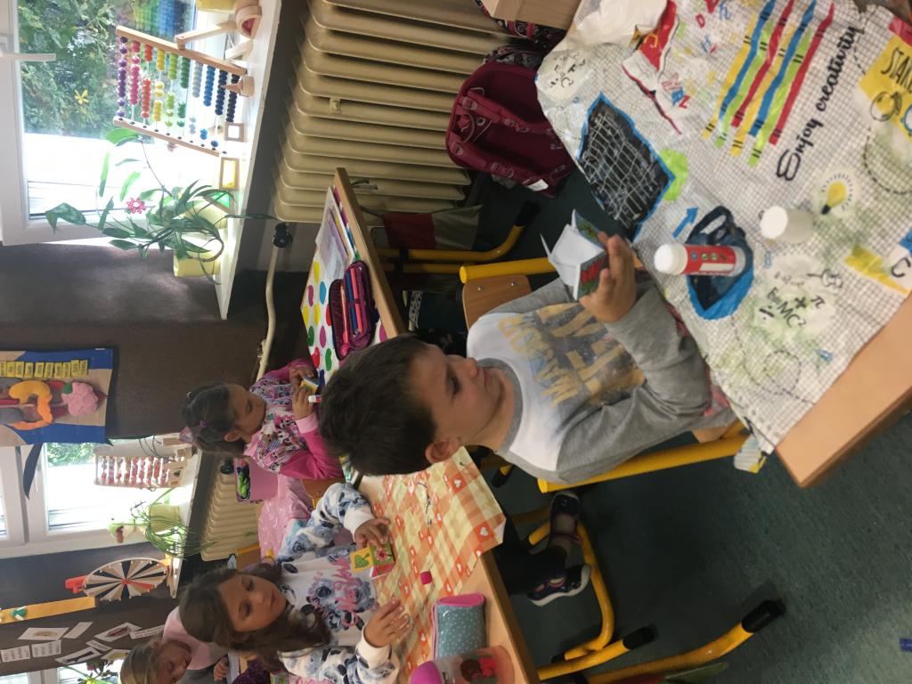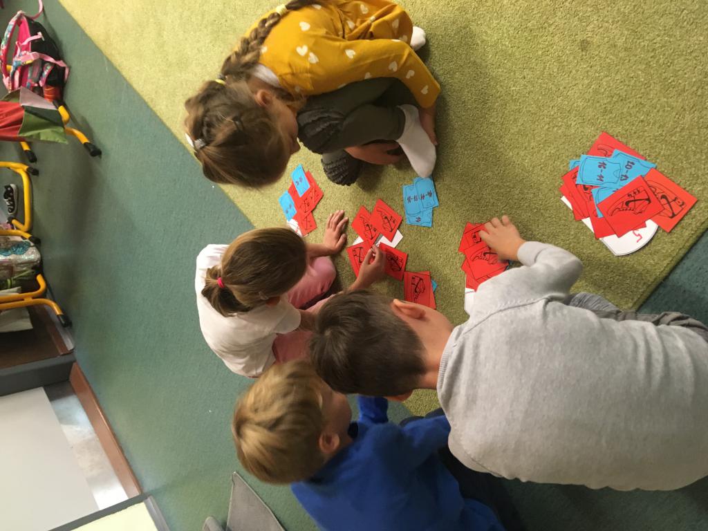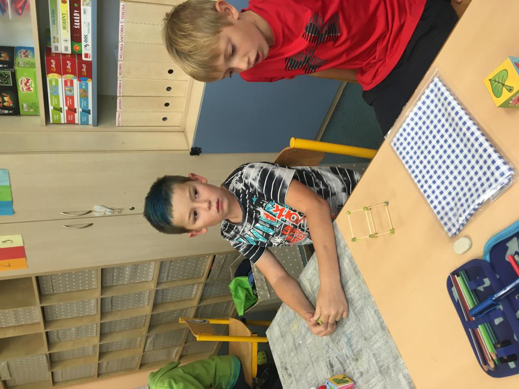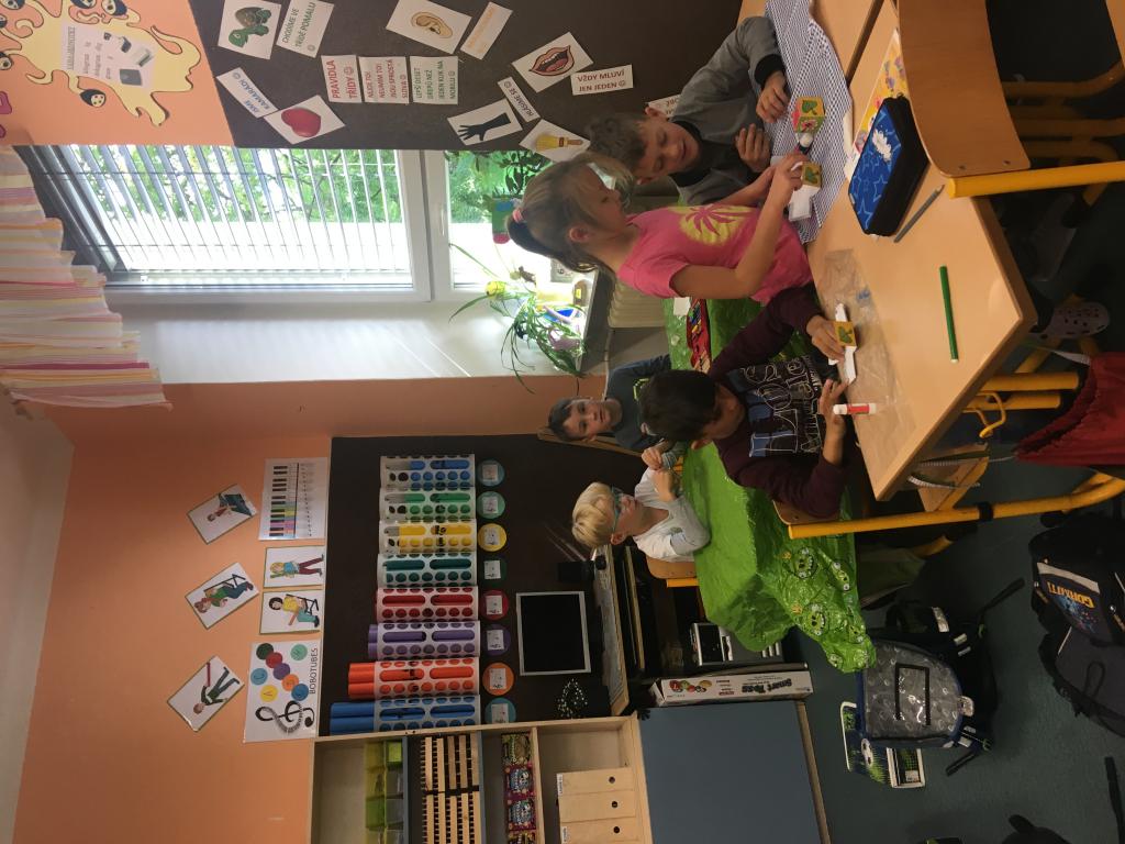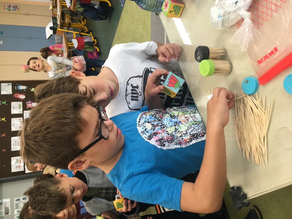 Minulý týden jsme se začali seznamovat s čísly do stovky. Na procvičení jsme využili balanční hru s dřívky. Bylo to napínavé a "veliké neštěstí", když se věž zřítila. :) Určitě si hru ještě mnohokrát zopakujeme. Svou zručnost jsme ještě prověřovali při vytváření kostky s potiskem. Tady nás trochu potrápilo lepidlo, které nelepí a nepřesně ohnutý papír... :) Ohromná zábava ale byla při skládání krychle a jehlanů z párátek a modelíny. Dokázali jsme spočítat všechny rohy alias vrcholy, strany a už víme, kolik párátek potřebujeme, aby nám vše šlo postavit. :)