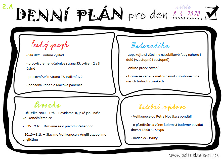 To mi zvoní v uších? Neeee, to zvoní na první hodinu! Tak jdeme na to. Plán dne najdete o5 v souborech.