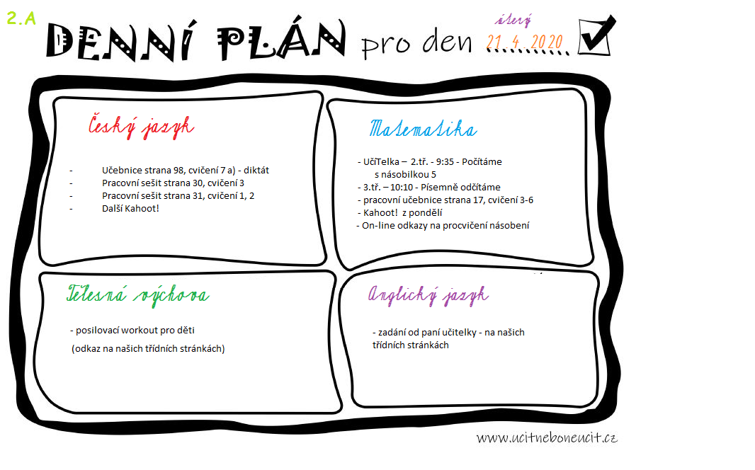 - Už máte úkoly od paní učitelky? :) Tady jsou: