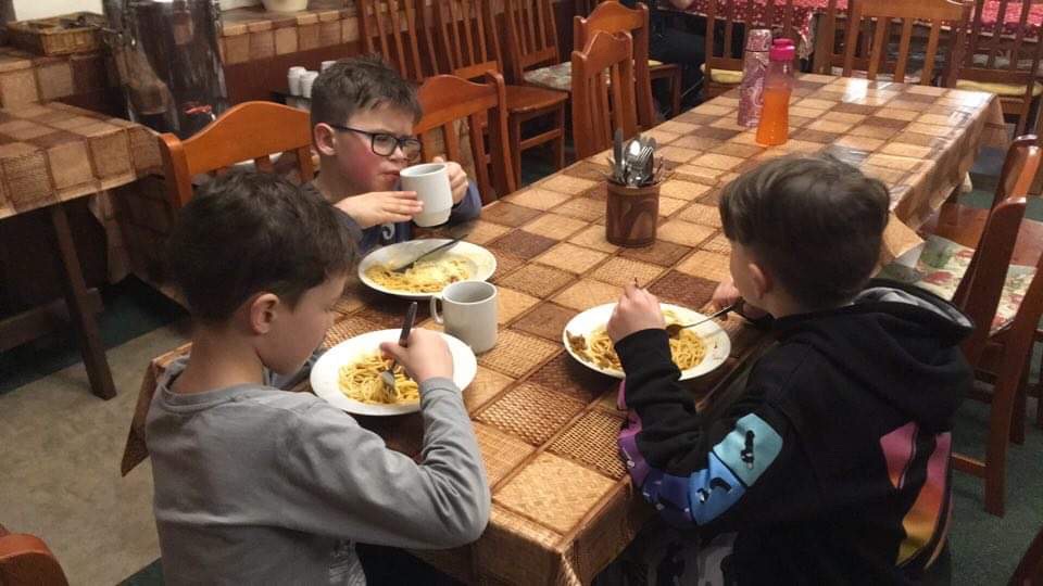 Hned jak jsme přijeli, vyprázdnili autobus i vlek, nastěhovali jsme se do pokojů. Moc jsme nevybalovali, protože nás dospěláci "vyhnali" ven na koulovačku, stavění sněhuláků a tak... Prostě sáhnout si na sníh. Dovybalili jsme až po večeři, která všem moc chutnala. Byly špagety s omáčkou. :)