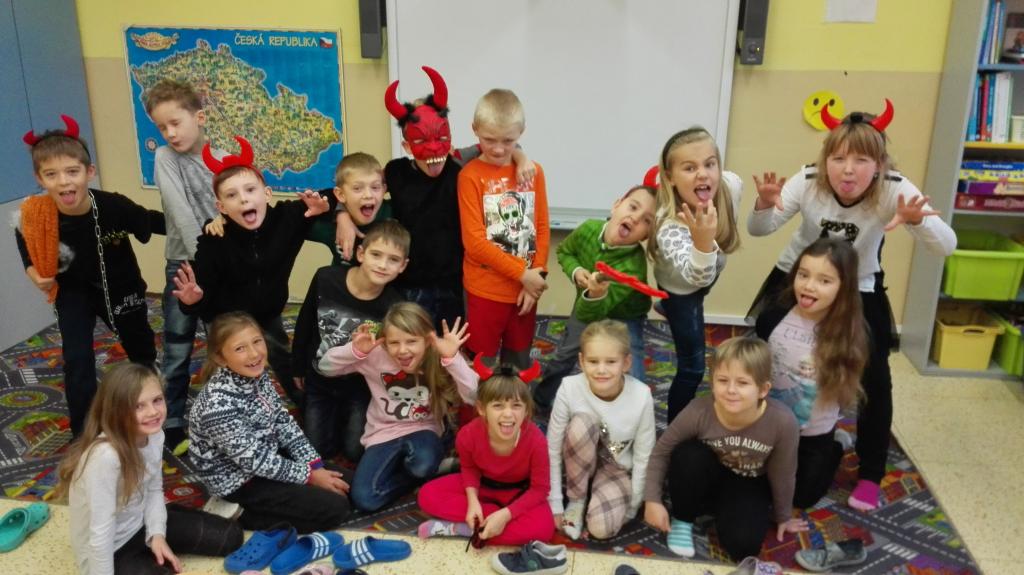 Dne 5.12. jsme se v rámci projektu "čertí škola" seznámili se zajímavými informacemi o čertovi, mikulášovi a andělovi. Pracovaly jsme s obrázkem od Josefa Lady, který pochází z knížky "Nezbedné pohádky". Také jsme se na jednu nezbednou pohádku o čertovi podívaly. Vymysleli jsme pro čerta také jiný názvy a to: Bertík, Teleprdlo, Motovidlo, Kopytar a Černý Kopyto. Tento den jsme si všichni užili.