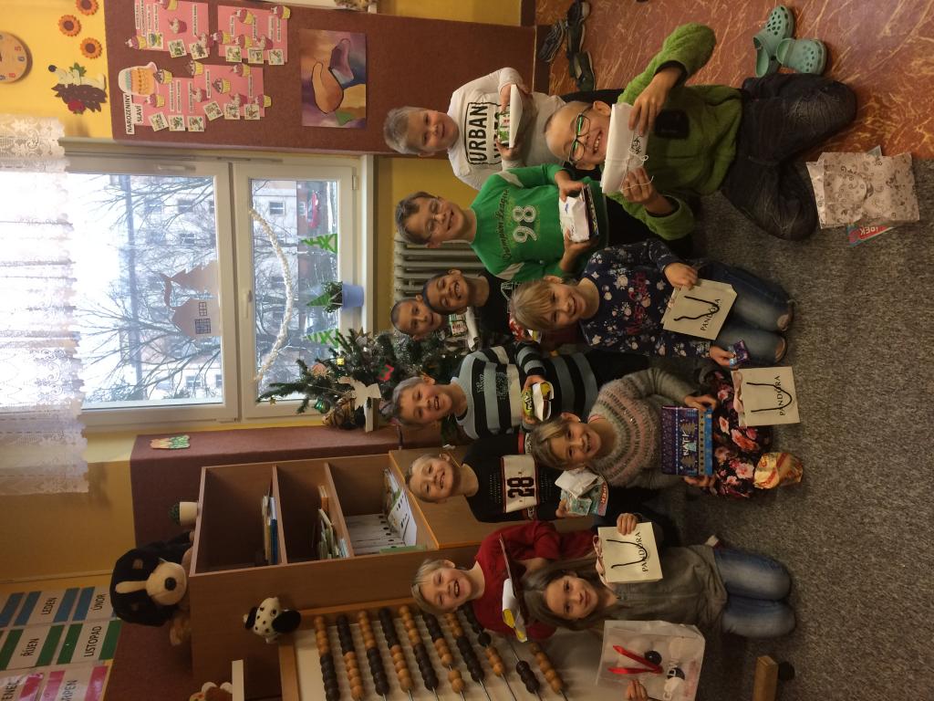 Dnešní den byl ve znamení pohody a klidu. Do třídy jsme každý donesl cukroví a dárečky pod stromeček, které jsme si rozdali a rozbalili. Cukroví jsme ochutnávali tak dluho, dokud nezbyly prázdné talíře. S dětmi jsme si během dne také zahrály hry, vyráběly a kreslily.