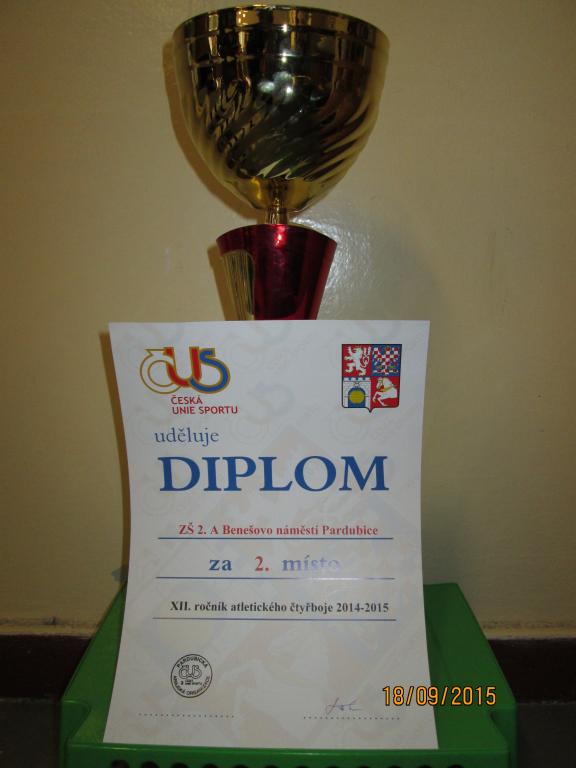 Proběhlo vyhlášení XII. ročníku atletického čtyřboje 2014- 2015. Naše třída vybojovala krásné 2. místo. Všem sportovcům gratuluji.  :-)
