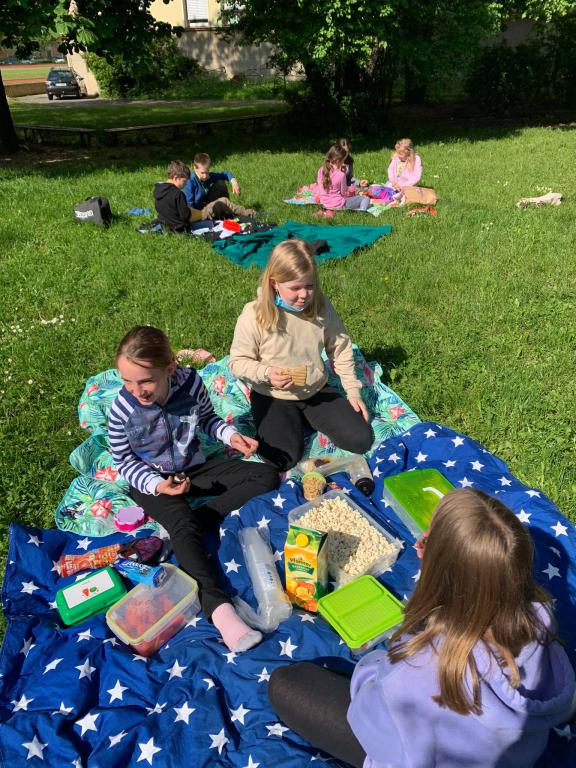 Vstup do letních měsíců se nám povedl víc než parádně. V úterý jsme vyrazili na školní zahradu a zaPIKNIKovali jsme si v přírodě. Krádné počasí nám k vychutnání všech přinesených dobrot přidalo i dobrou náladu. Pobíhali jsme od deky k dece a "uzobávali" na ochotnuvku.