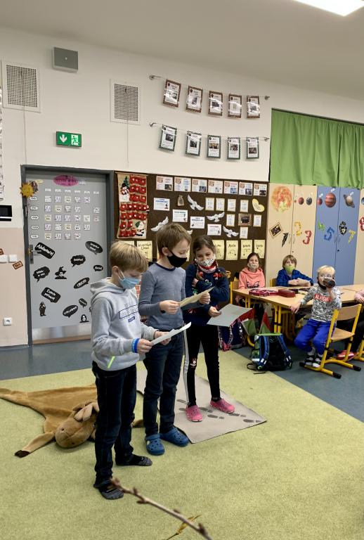 Taky jsme přednášeli básničku na slovní druhy. To už nás zjevně až tak nebavilo... Hlavičky jsme si procvičili a nakonec jsme se všichni tu užitečnou říkanku naučili. Sláva nám!