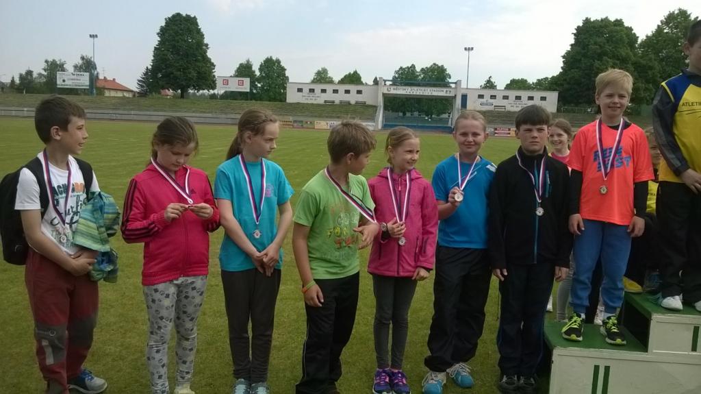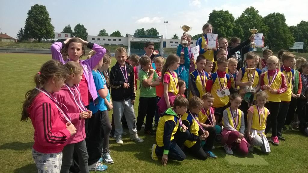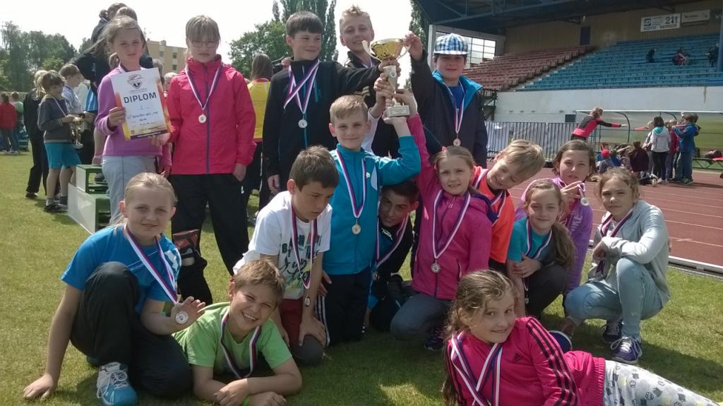 Ve čtvrtek 14. května jsme plni očekávání a nervozity vyrazili na Městský atletický stadion v Pardubicích změřit síly s dalšími devíti školami ve štafetách. Závodu se zúčastnili zástupci ze 3.A, 3.B, 4.B a ze všech pátých ročníků. Děti bojovaly s obrovským nasazením a odhodláním. Celkově jsme získali krásné druhé místo. Slavnostní atmosféru podpořila i přítomnost mistryně světa Ludmily Formanové, která dětem předávala medaile a poháry.