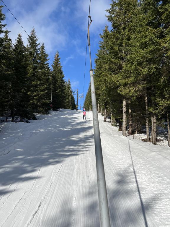 I přes to, že v Pardubicích to vypadá na jaro, my jsme si uprostěd února užili zimu v plné parádě. Tentokrát jsme vyjeli vysoko do Krkonoš na Medvědí boudu. První den jsme se rozlyžovali u chaty a další dny jsme chodili lesní cestou na delší sjezdovku, kde jsme pilovali své oblouky