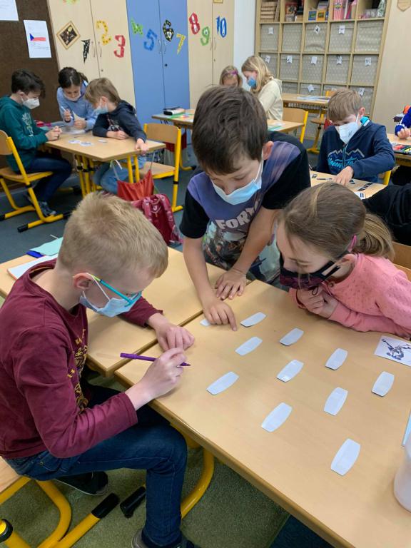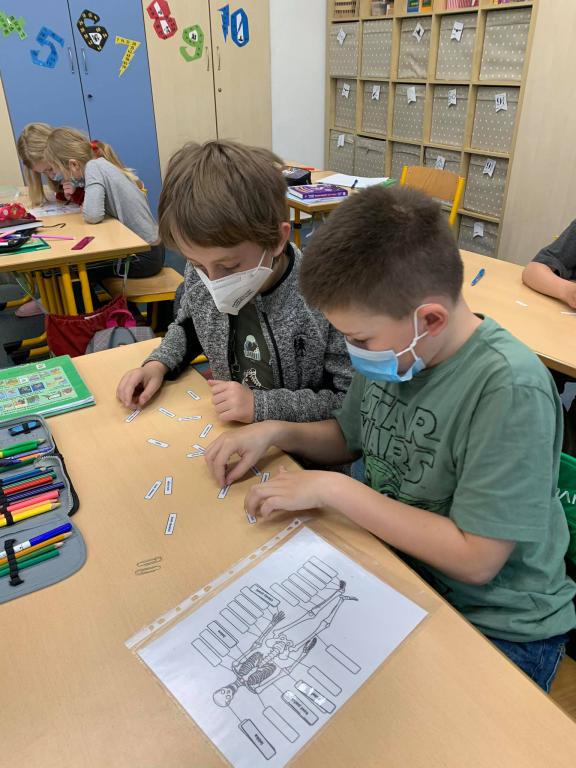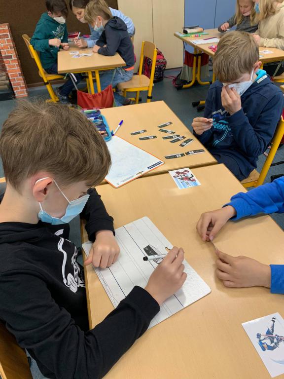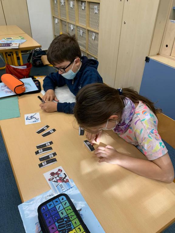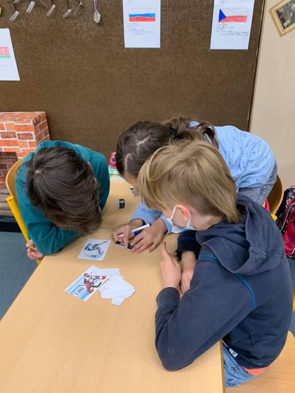 Také jsme si vytvořili týmové karty, vymysleli týmový pokřik, dresy, helmy hráčů i brankářů, počítali jsme puky s příklady, určovali kosti v těle hokejisty ... Bylo toho víc než dost.