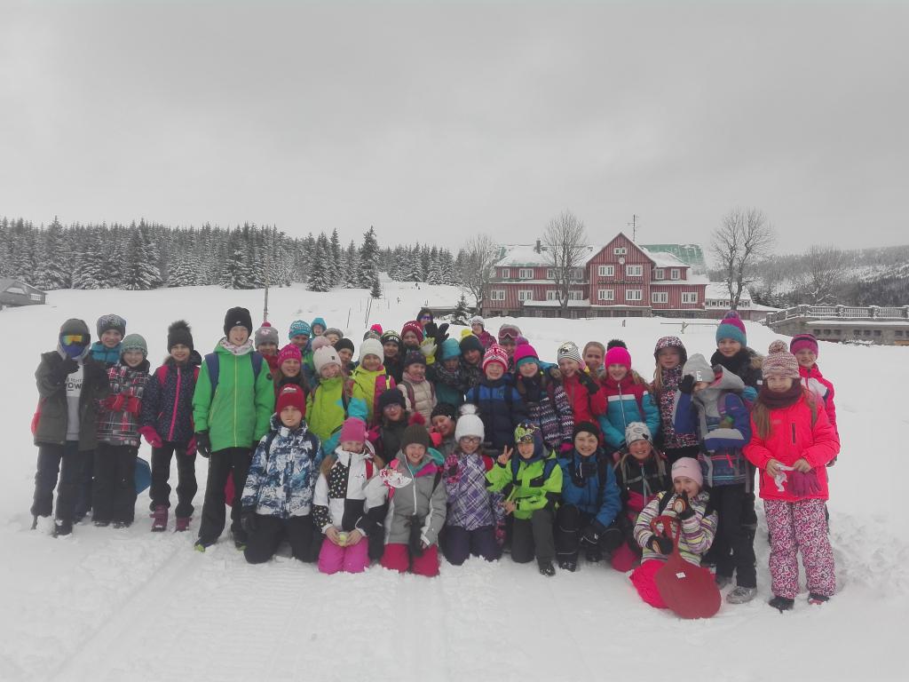 Máme za sebou další parádní soustředění. Březnový týden jsme strávili na Medvědí boudě v Krkonoších. Každý den jsme měli čerstvý prašan,který jsme si užívali nejdříve na sjezdovkách a po obědě na běžkách :). Ano, běžky. Ty jsme letos zkoušeli poprvé a docela nám to i šlo :). Jedno odpoledne nám zahrabali paní učitelky do sněhu a my jsme je museli pomocí lavinového vybavení najít. Na štestí jsme je našli :). Celý týden jsme si moc užili společně ještě s paní vychovatelkou, Pavlem a Lukášem.